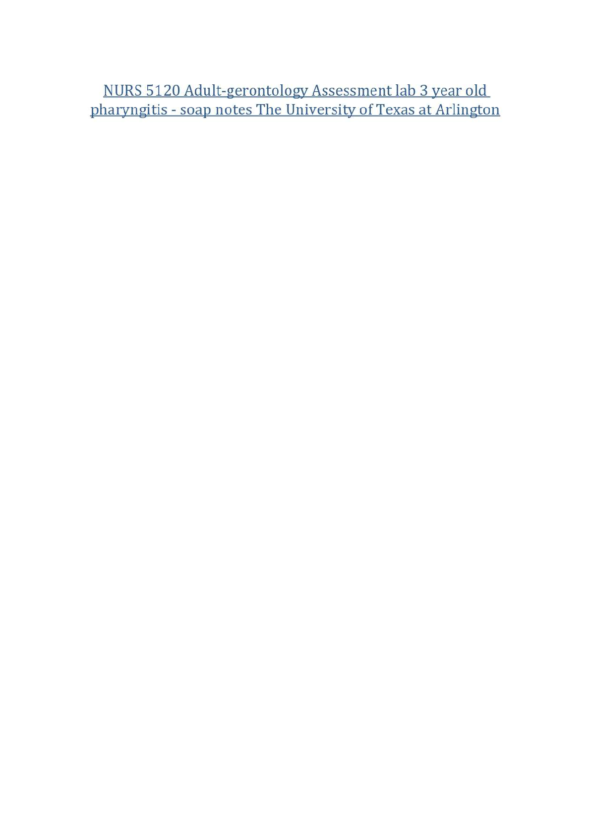 Ace your NURS 5120 Adult-Gerontology Assessment Lab at The University of Texas at Arlington with this comprehensive case study. This resource provides a detailed set of SOAP notes for a pediatric patient (3-year-old) diagnosed with pharyngitis. Updated for the 2025/2026 academic year, this guide is expertly crafted to help you master clinical documentation, understand patient assessment, and develop accurate care plans. It's the perfect tool to prepare for your exams, ensuring you grasp key concepts and pass on your first attempt, avoiding costly resits. Download now to elevate your nursing skills and excel in your coursework.