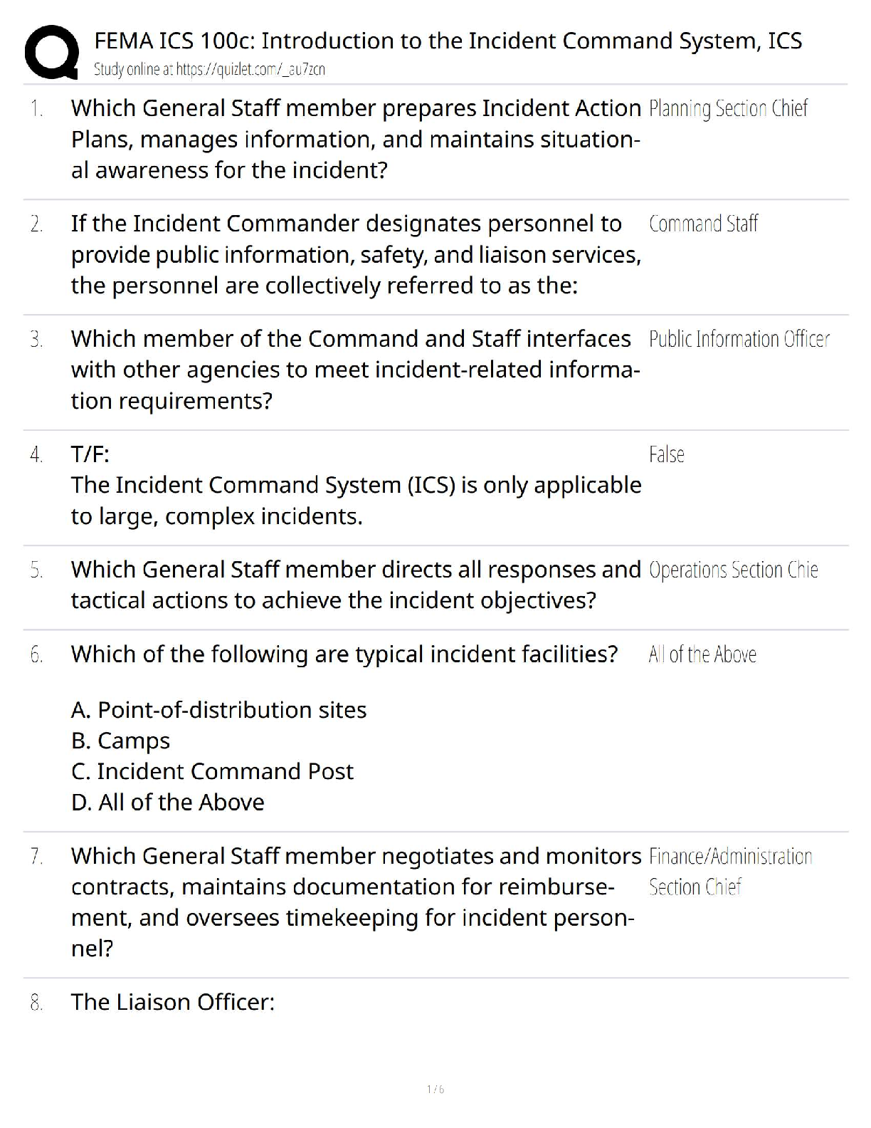 Master the fundamentals and pass your certification with ease using our complete test bank for FEMA's IS-100.C course, 'Introduction to the Incident Command System, ICS'. This study guide is packed with verified questions and correct answers covering every critical module. Deepen your understanding of Command and General Staff roles, incident facilities, and operational procedures. This essential resource is specifically designed to streamline your study process, ensuring you pass your exam on the first attempt.