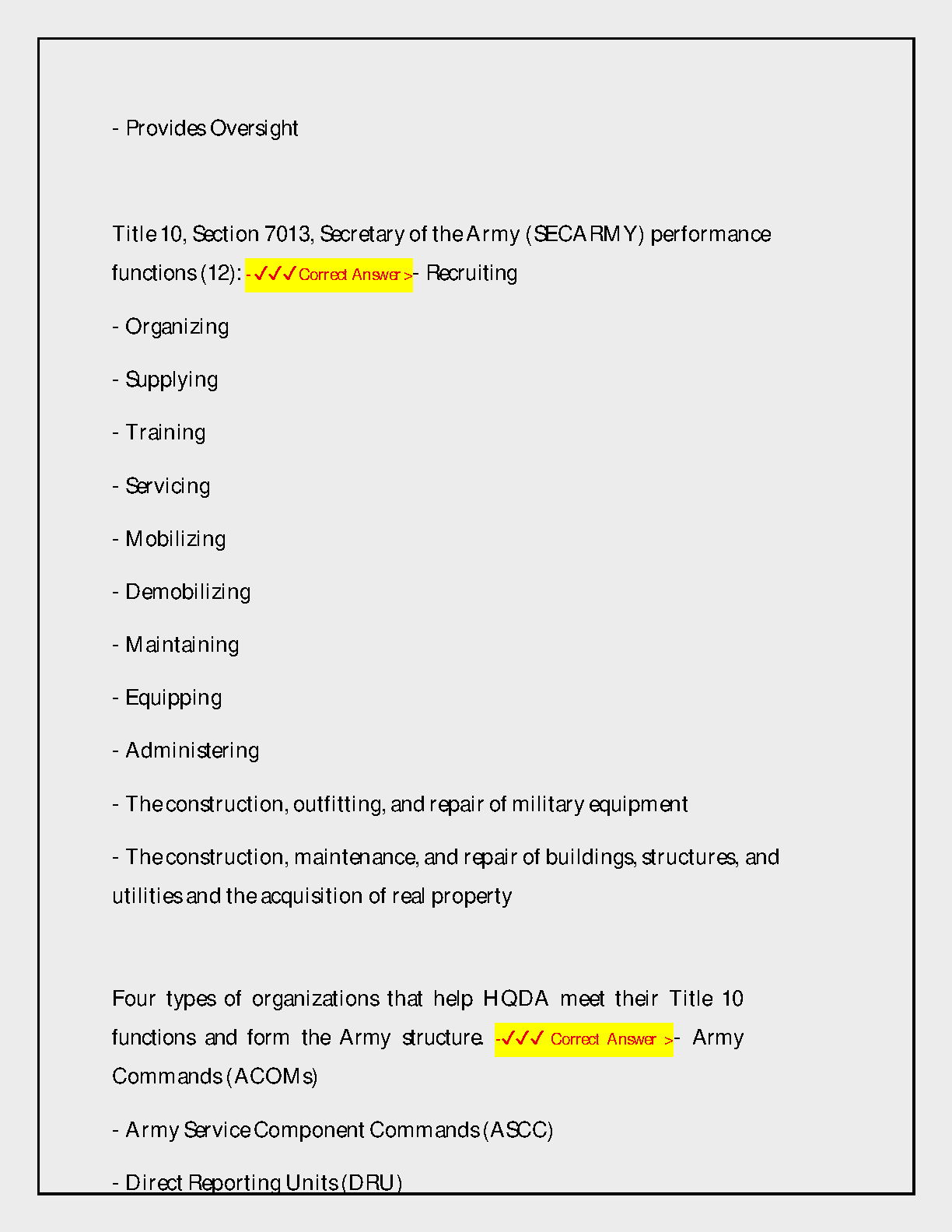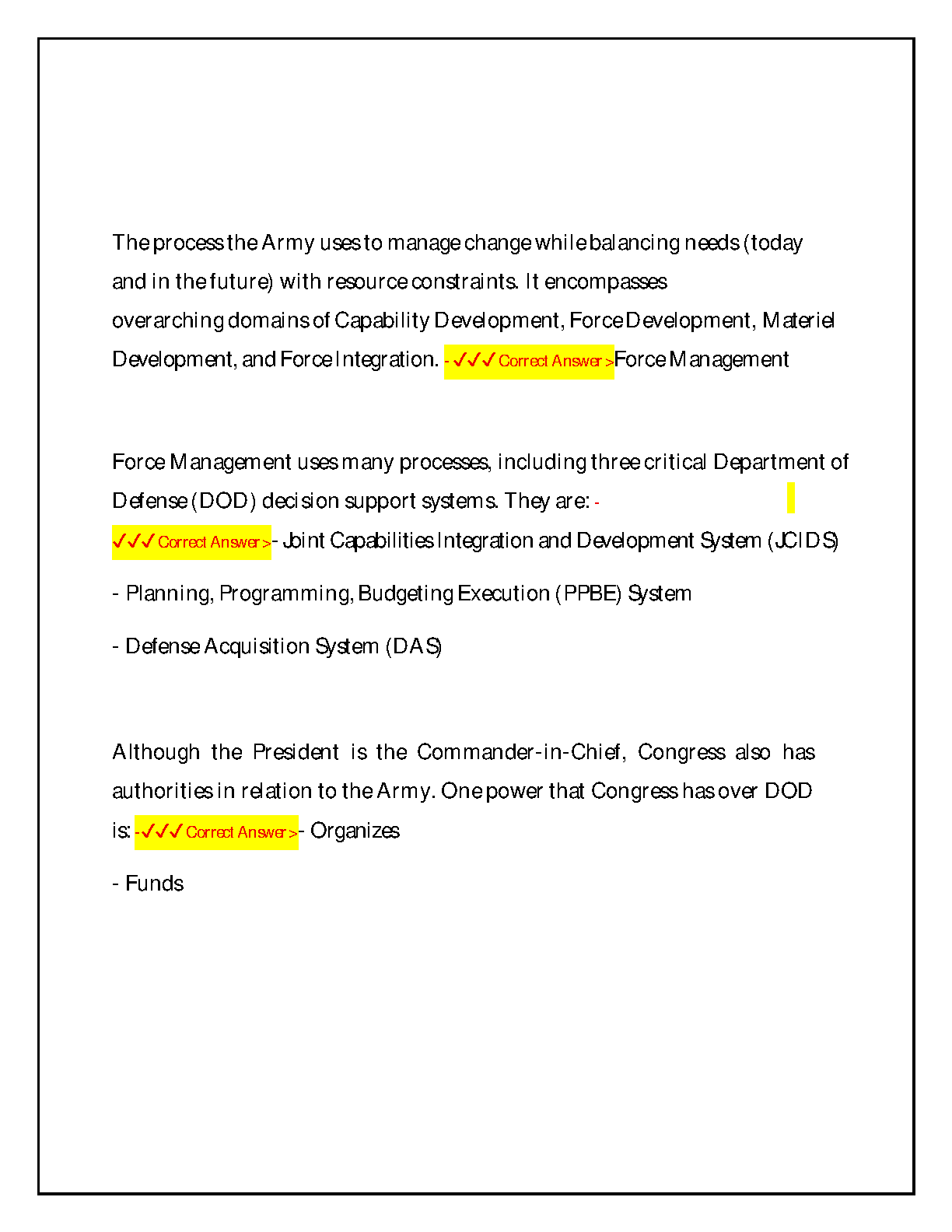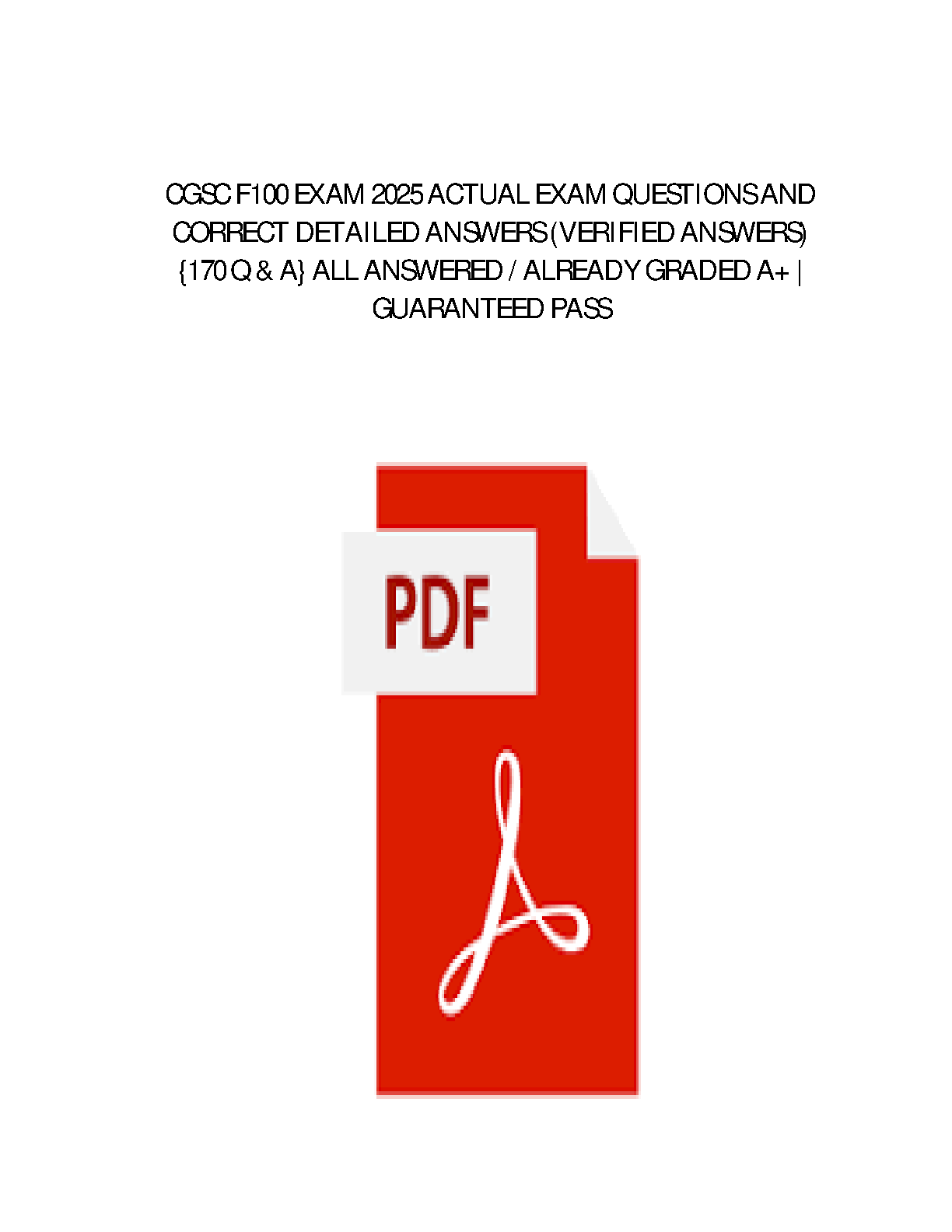 Prepare to ace your CGSC F100 exam with our comprehensive 2025 test bank. This resource is meticulously compiled with 170 actual exam questions, each paired with a correct, detailed, and verified answer. Designed for students aiming for an A+ grade, this guide covers all essential topics and ensures you are fully prepared for the real test. Stop worrying about resits and secure your success. All questions are fully answered and reviewed for accuracy, providing you with a reliable study tool to pass with confidence on your first attempt.
