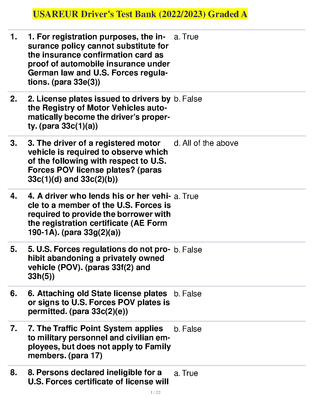 USAREUR Driver's Test Bank (2022/2023) Graded A+. DOWNLOAD on www.hackedexams.com INSTANTLY.