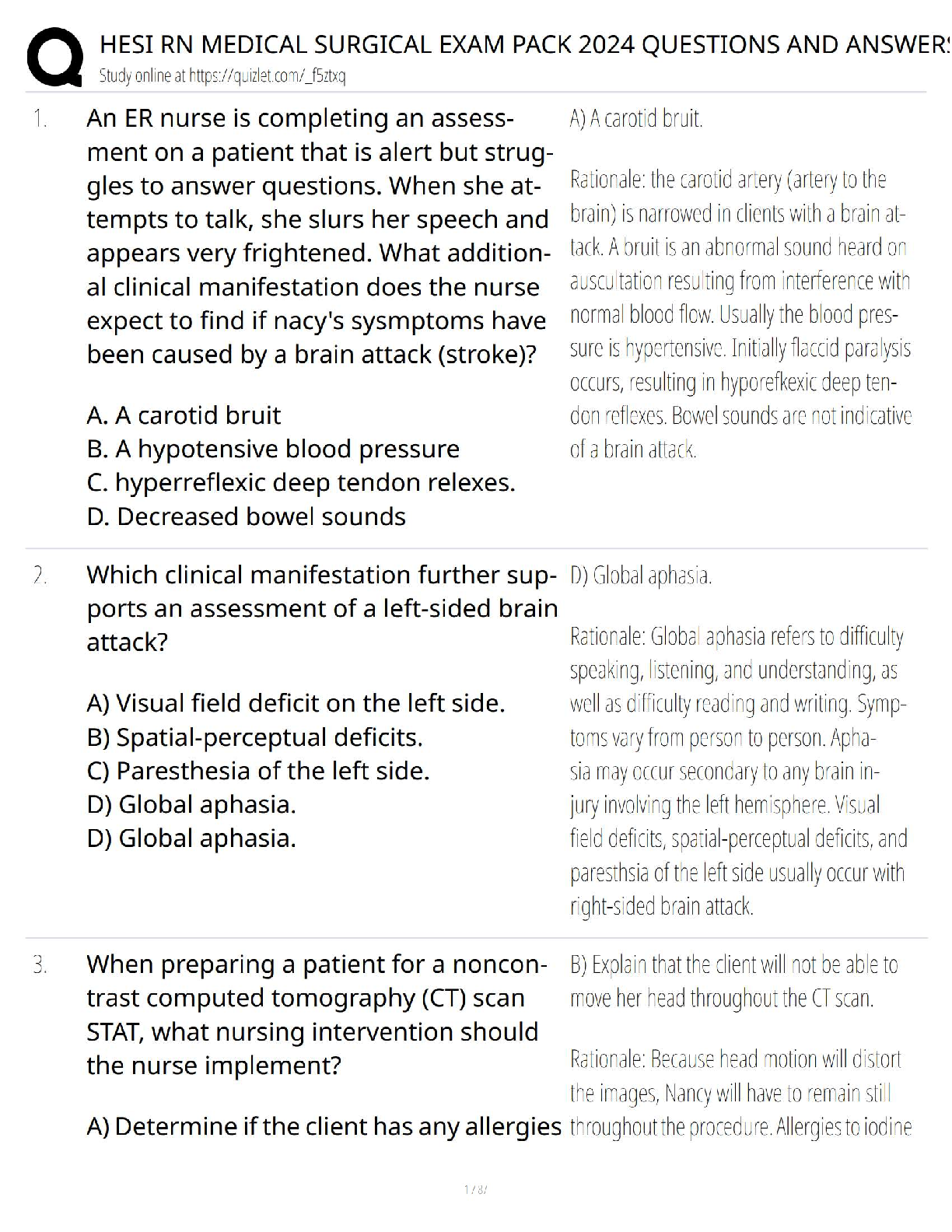 Prepare to excel on your HESI RN Medical-Surgical exam with our latest 2025/2026 test bank. This comprehensive study resource is packed with a wide range of practice questions, complete with verified answers and in-depth rationales for each. Designed to mirror the actual exam format, this guide helps you master key Med-Surg concepts, improve your critical thinking skills, and build the confidence needed to pass on your very first try. Avoid resits and achieve your nursing goals with this essential study tool.