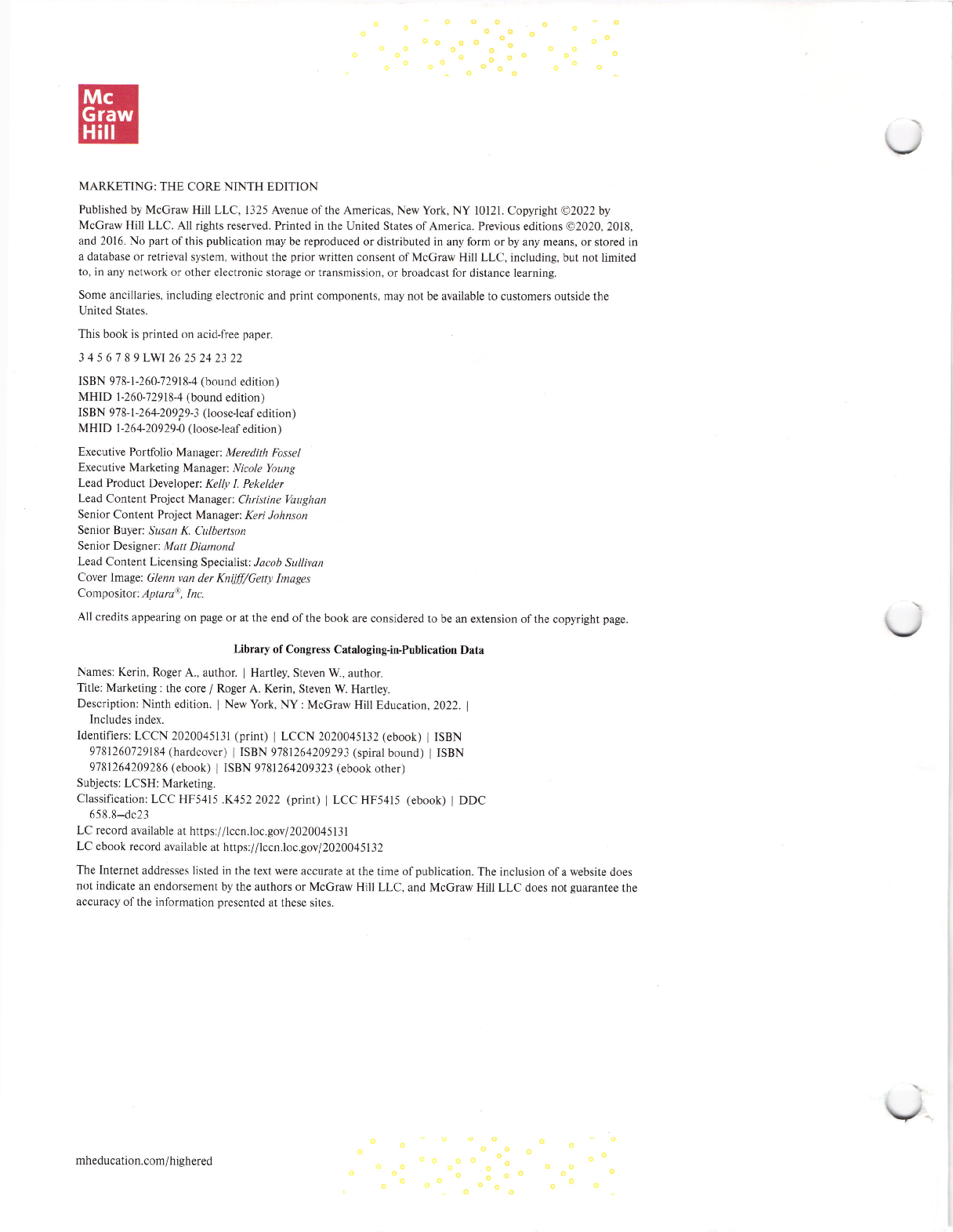 Test Bank for Marketing: The Core, 9th Edition by Roger A. Kerin & Steven W. Hartley