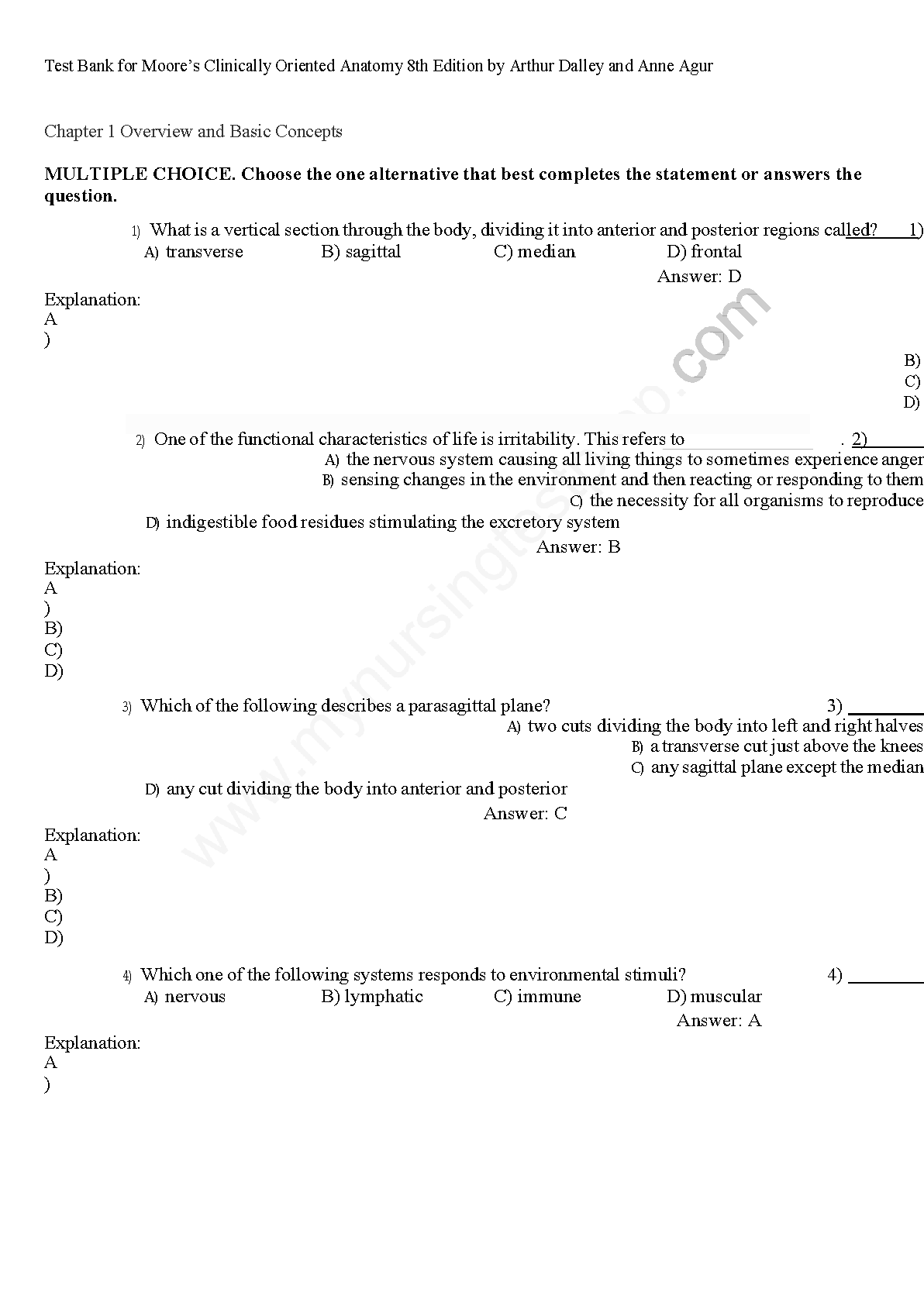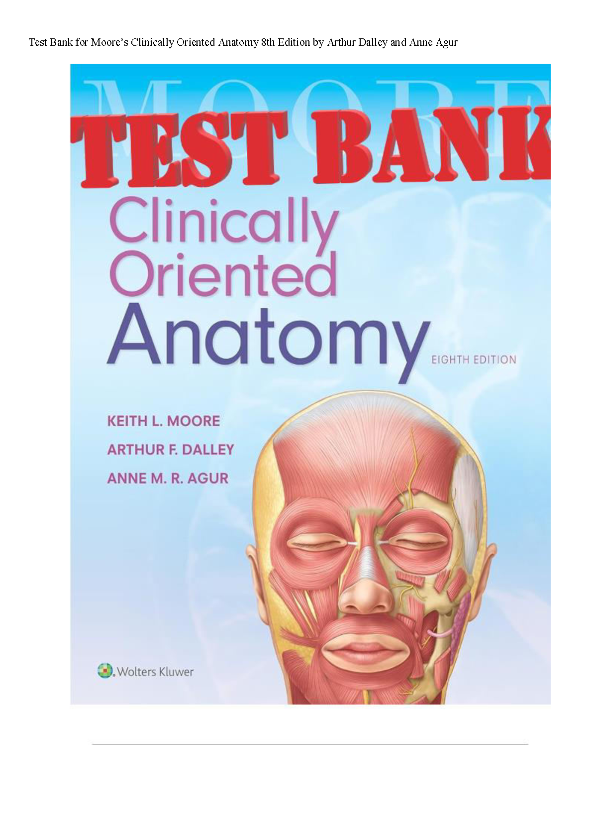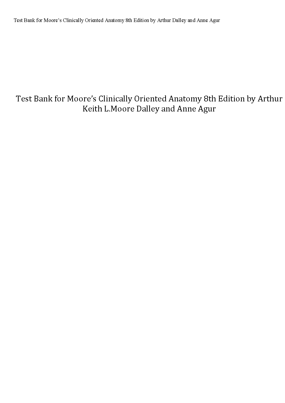 Unlock your full potential in anatomy with the complete Test Bank for Moore's Clinically Oriented Anatomy, 8th Edition. Authored by the renowned team of Keith L. Moore, Arthur F. Dalley II, and Anne M. R. Agur, this study guide is your key to acing your exams. Dive into an extensive collection of practice questions, complete with verified answers and in-depth rationales, covering every chapter of the textbook. This resource is expertly designed to reinforce your understanding, pinpoint areas for improvement, and build confidence for exam day. Stop cramming and start mastering the material. Get immediate access to this invaluable tool and ensure you pass your anatomy course with flying colors.