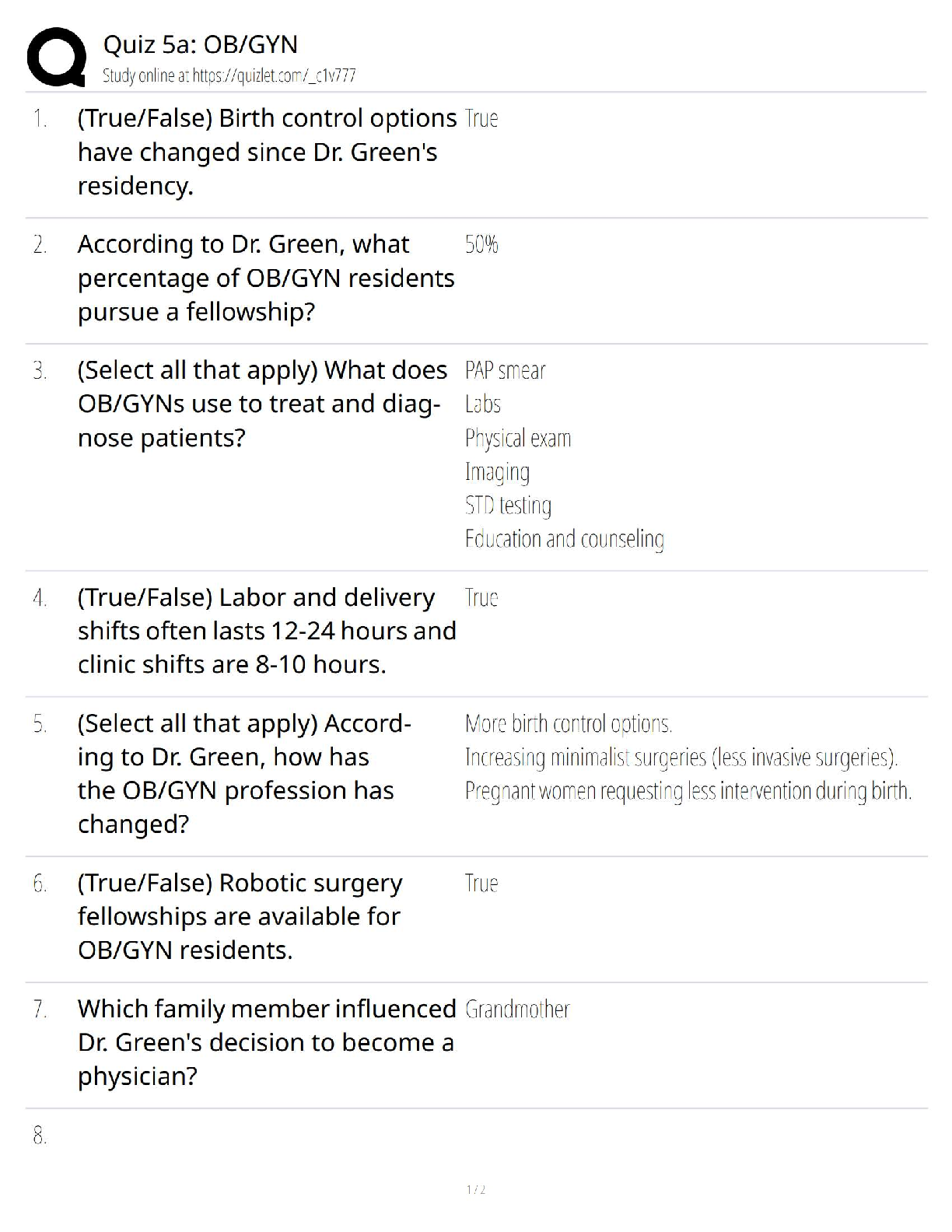 Ace your obstetrics and gynecology course with our comprehensive Test Bank for Quiz 5a. This study guide features a complete set of questions and verified answers, covering essential topics such as modern birth control options, diagnostic procedures like PAP smears and STD testing, the realities of OB/GYN residency including fellowships and work shifts, and the evolution of the profession. This resource is perfectly designed for the 2025/2026 academic year, helping you grasp key concepts, test your knowledge, and prepare effectively to pass your exams on the first try. Download now for immediate access to this essential study tool.