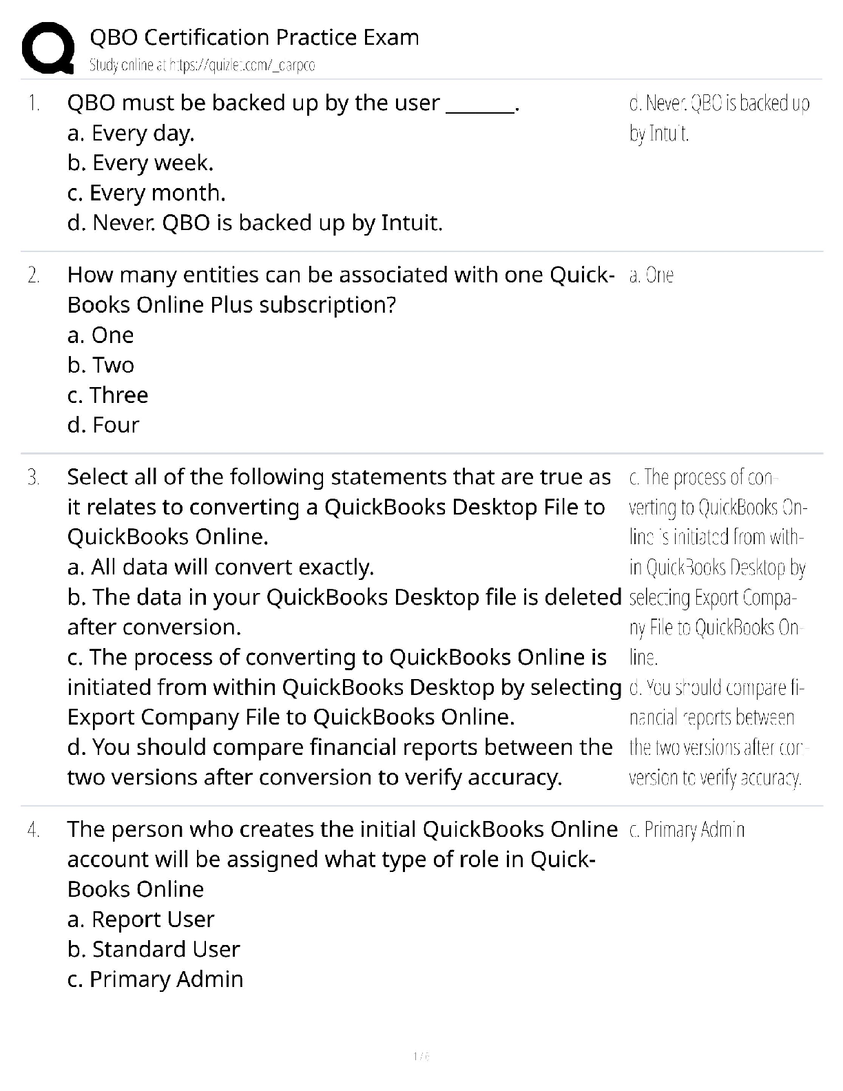 Prepare to ace your Intuit QuickBooks Online (QBO) ProAdvisor Certification with our comprehensive 2025/2026 Test Bank. This essential study resource features a complete collection of updated practice questions and verified answers, mirroring the format and difficulty of the actual certification exam. Master key concepts in setup, daily bookkeeping, reporting, and advanced features. Ideal for aspiring bookkeepers and accounting professionals, this guide is designed to help you pass confidently on your first try and avoid costly resits. Get instant access to the materials you need to become a certified QBO ProAdvisor today!
