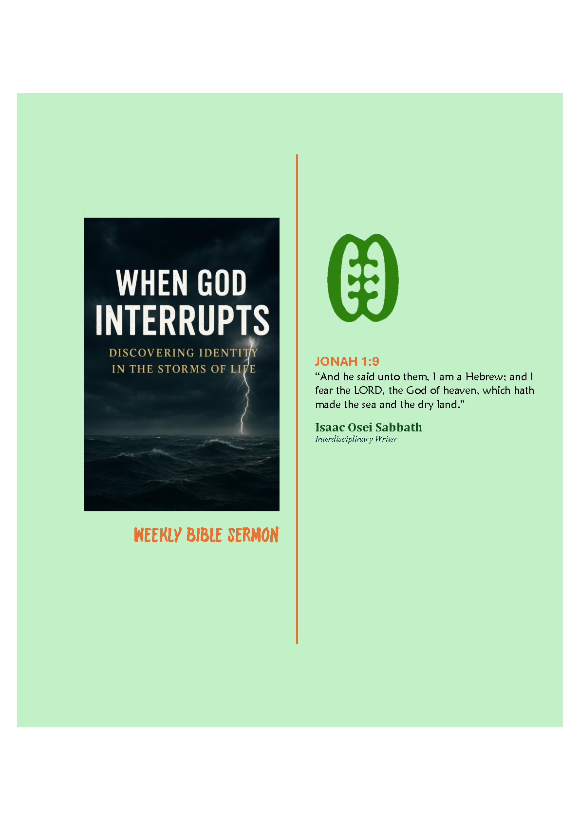 Sermon & Bible Study on Jonah 1:9 - When God Interrupts: Discovering Your Identity in Life's Storms by Isaac Osei Sabbath