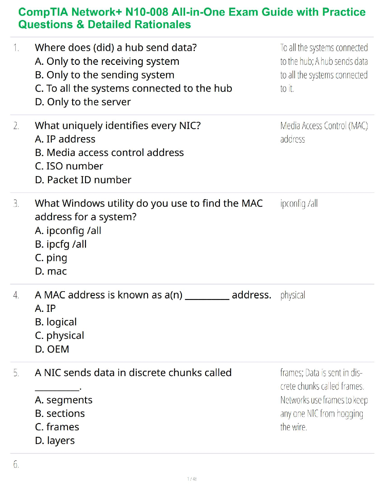 Master the CompTIA Network+ (N10-008) exam with this comprehensive test bank, based on the renowned 'All-in-One Exam Guide, 8th Edition' by Mike Meyers and Scott Jernigan. This essential study tool provides hundreds of practice questions complete with detailed rationales, designed to deepen your understanding of networking concepts and prepare you for real exam scenarios. Sharpen your skills, identify knowledge gaps, and build the confidence to achieve your certification on the first try. Your path to becoming a certified networking professional starts here.