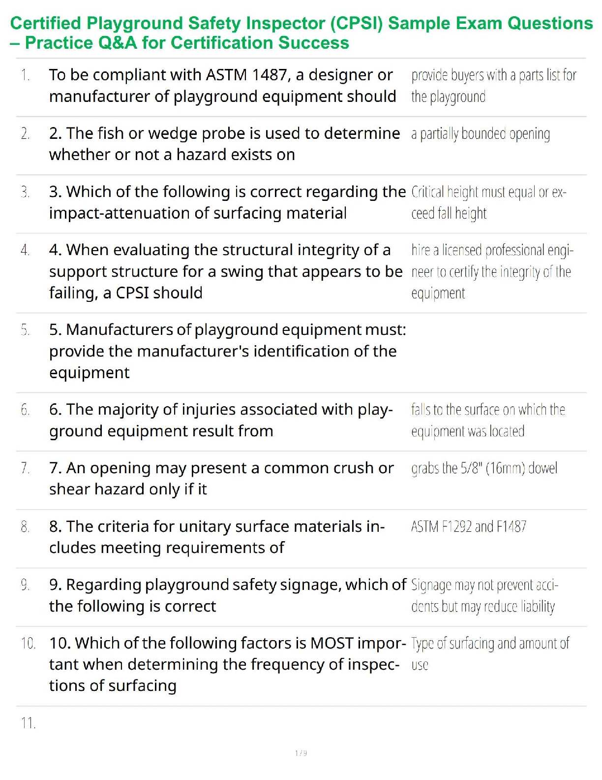 Ultimate CPSI Exam Test Bank 2025: Comprehensive Q&A for Certified Playground Safety Inspector Certification Success (NRPA Standards)