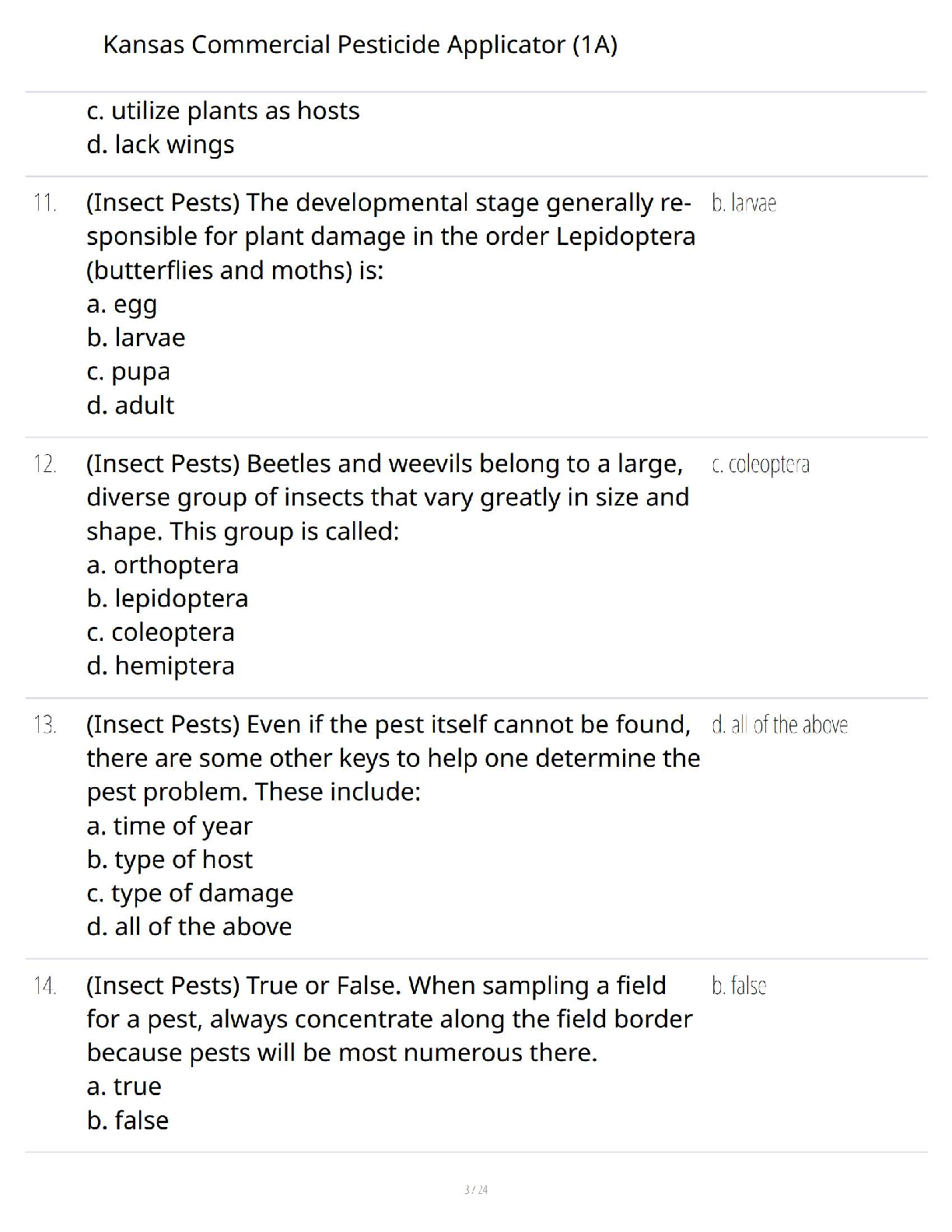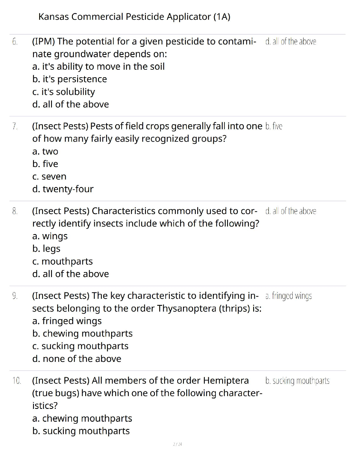 Kansas Commercial Pesticide Applicator (1A) Test Bank: Practice Exam Q&A with Rationales based on the K-State Research and Extension Manual