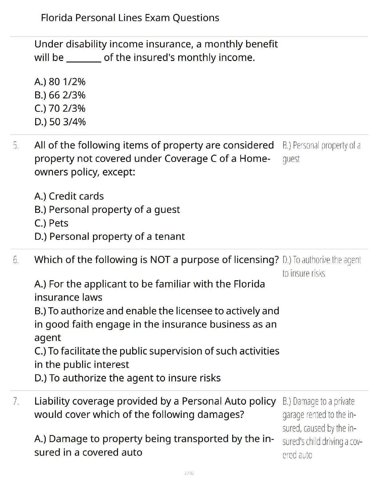 Ace your Florida Personal Lines Agent (20-44) exam with confidence! This comprehensive test bank is your ultimate study partner, updated for the 2025/2026 licensing period. It features a vast collection of practice questions that mirror the actual exam, covering key topics like Personal Auto Policies, Homeowners Policies, and more. Each question comes with a detailed, easy-to-understand rationale, helping you grasp complex concepts and learn from your mistakes. Prepare effectively, master the material, and get licensed on your first attempt with this essential resource.