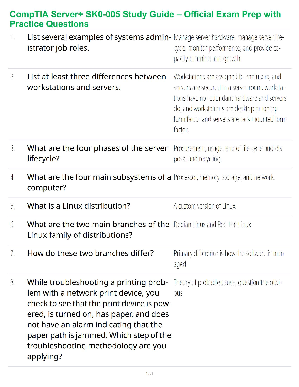 Prepare to pass your CompTIA Server+ (SK0-005) certification exam on your very first try with our expertly crafted test bank! This comprehensive resource features a vast collection of practice questions and detailed answers, covering all essential exam objectives. Master key concepts such as server hardware management, server lifecycle, Linux distributions, troubleshooting methodologies, and more. This study guide is your ultimate key to avoiding resits and confidently earning your certification. Boost your knowledge, test your readiness, and walk into the exam room fully prepared for success.