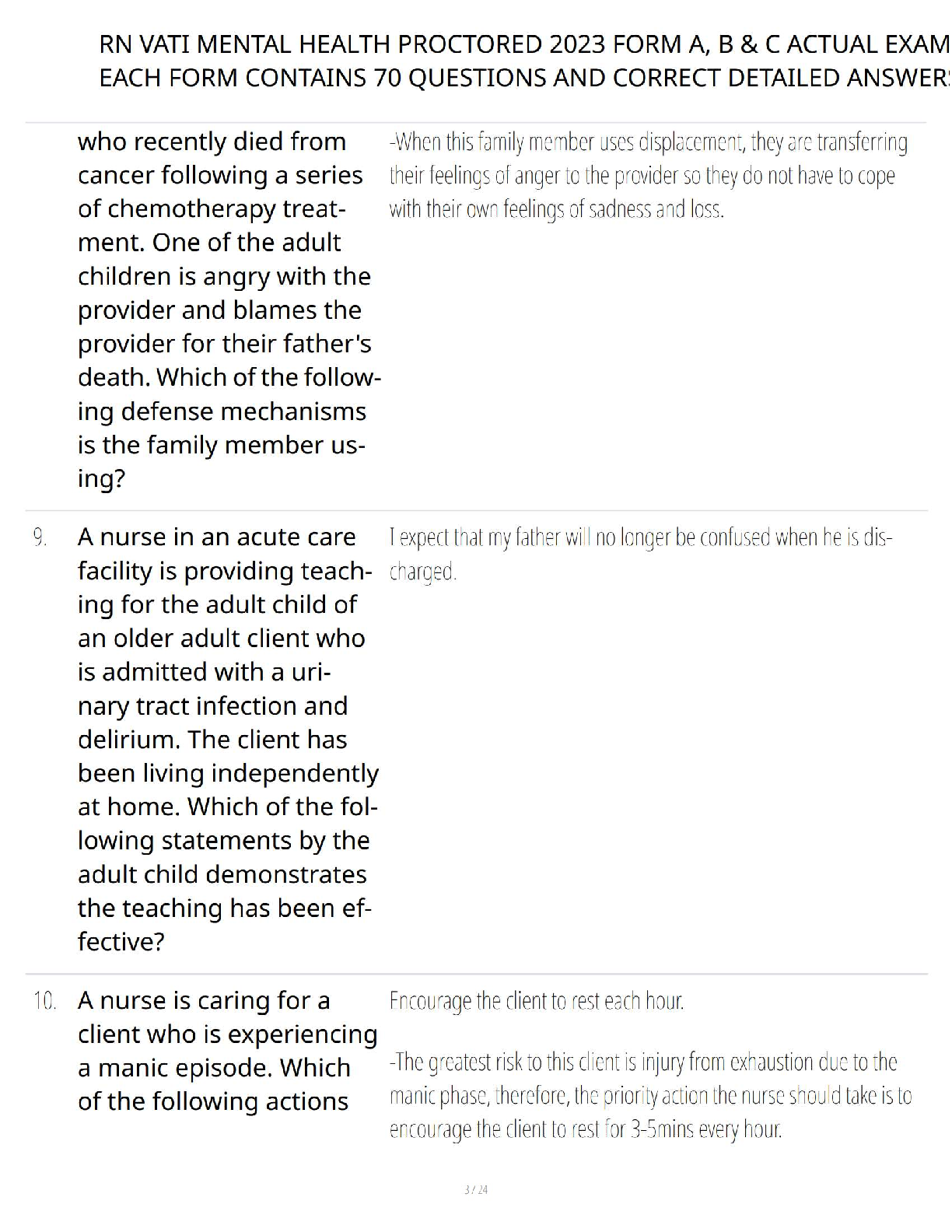 Master the ATI RN VATI Mental Health Proctored Exam 2023: Comprehensive Test Bank for Forms A, B, & C with 70 Expert-Verified Questions & Answers