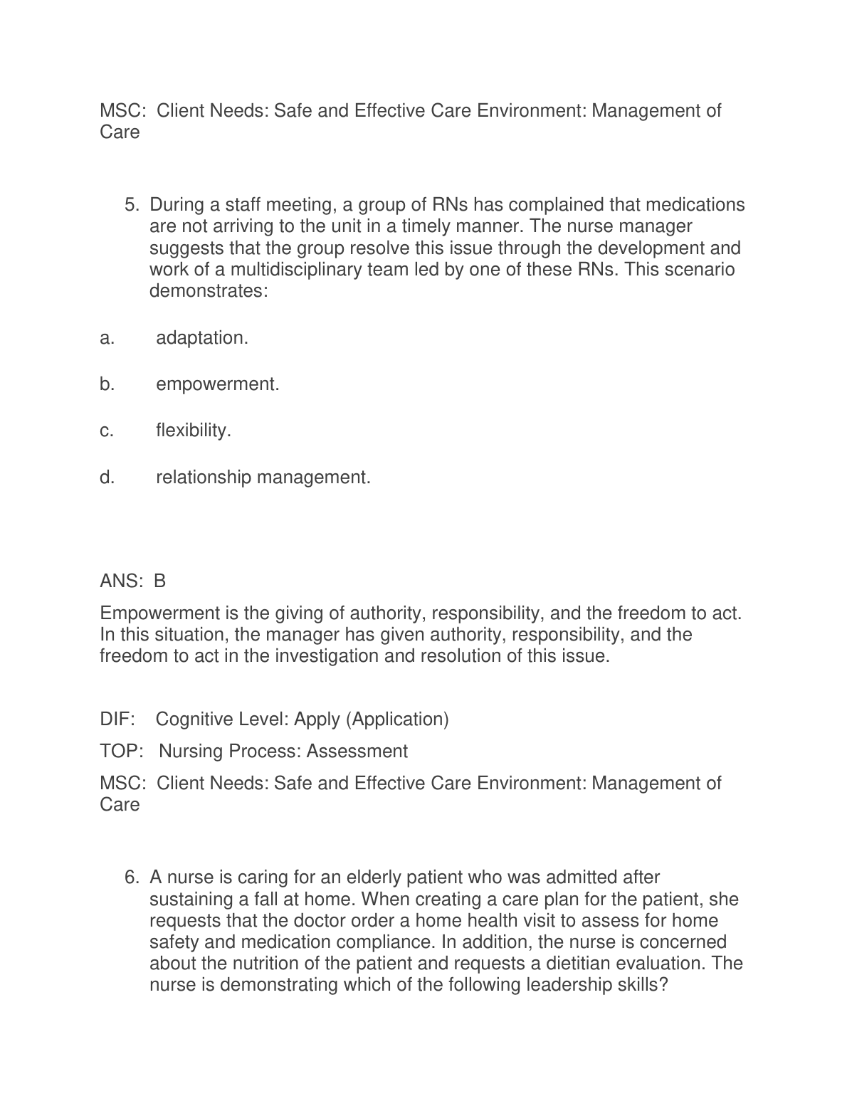 Leadership and Nursing Care Management, 6th Edition by Diane Huber – Test Bank