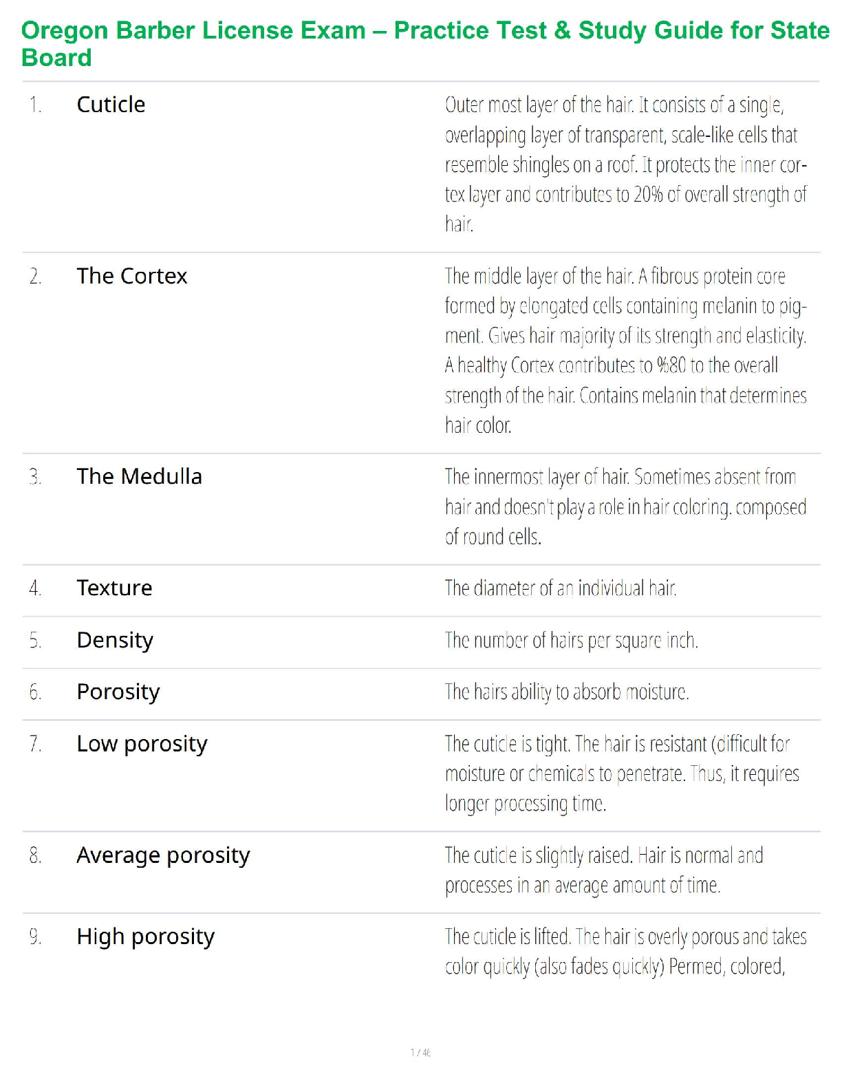 Are you preparing for the Oregon Barber License Exam? Get the ultimate advantage with our brand-new 2025/2026 study guide! This comprehensive resource is expertly designed to help you master all essential topics required by the State Board, from hair anatomy like the cuticle and cortex to crucial concepts such as porosity and density. Our guide breaks down complex information into easy-to-understand definitions and explanations, ensuring you have the knowledge and confidence needed to pass your exam on the very first try. Stop worrying about resits and start your successful barbering career today with the most up-to-date and effective prep tool available!
