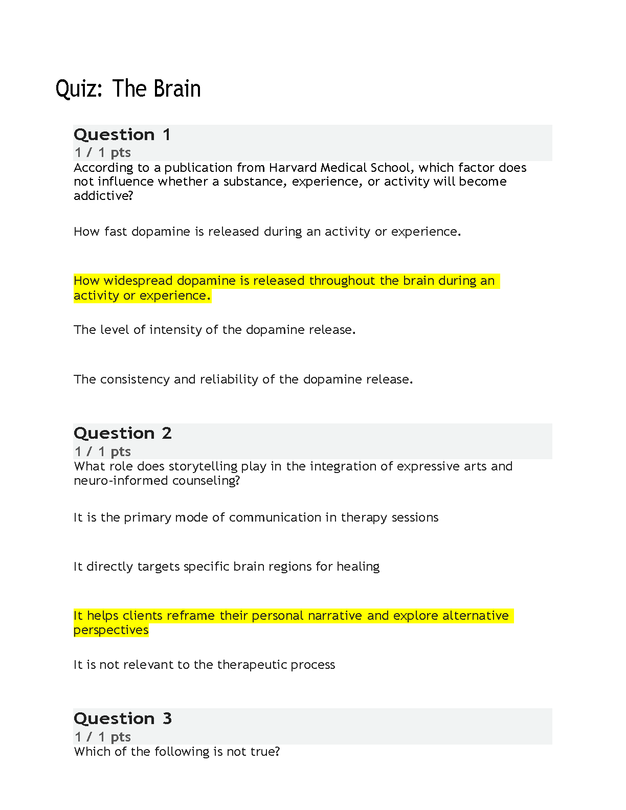 Master the complexities of the human brain with our comprehensive quiz bank. This essential study guide features detailed questions and verified answers covering key topics in neuroscience and psychology, including the role of dopamine in addiction and the application of neuro-informed counseling techniques like storytelling. Designed to deepen your understanding and boost your confidence, this resource is your key to passing your exams on the first try and avoiding costly resits. Get instant access to the answers you need to excel in your studies.