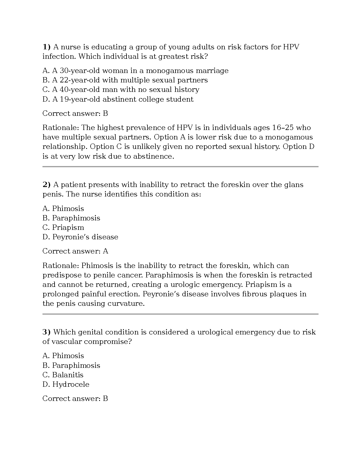 Gain the ultimate advantage in your nursing studies with the complete Test Bank for the 10th Edition of 'Medical-Surgical Nursing' by Ignatavicius, Workman, Rebar, and Heimgartner. This essential study guide features a comprehensive collection of exam-style questions covering all key chapters, including detailed rationales to clarify complex concepts. Master critical topics like HPV risk factors, urological emergencies, and male reproductive disorders. Designed to help you ace your exams and build a strong foundation in medical-surgical nursing, this resource is your key to academic success. Instant download available.