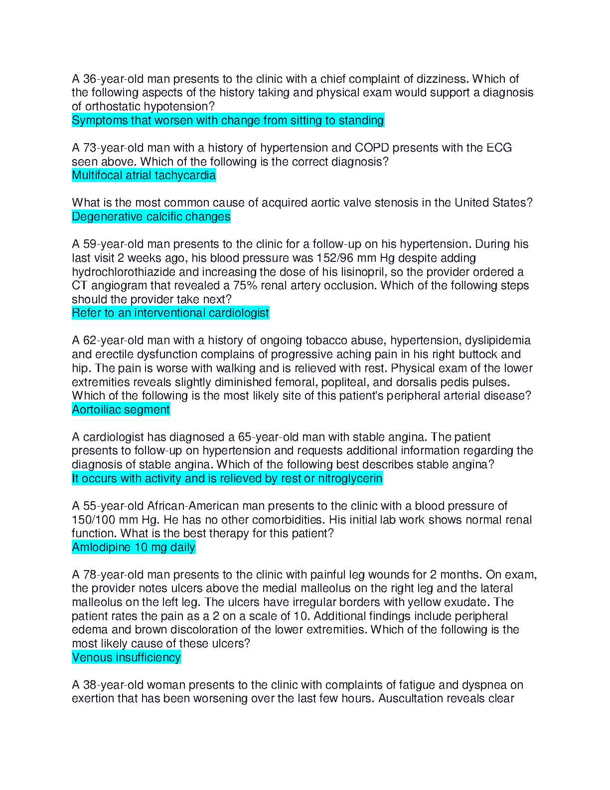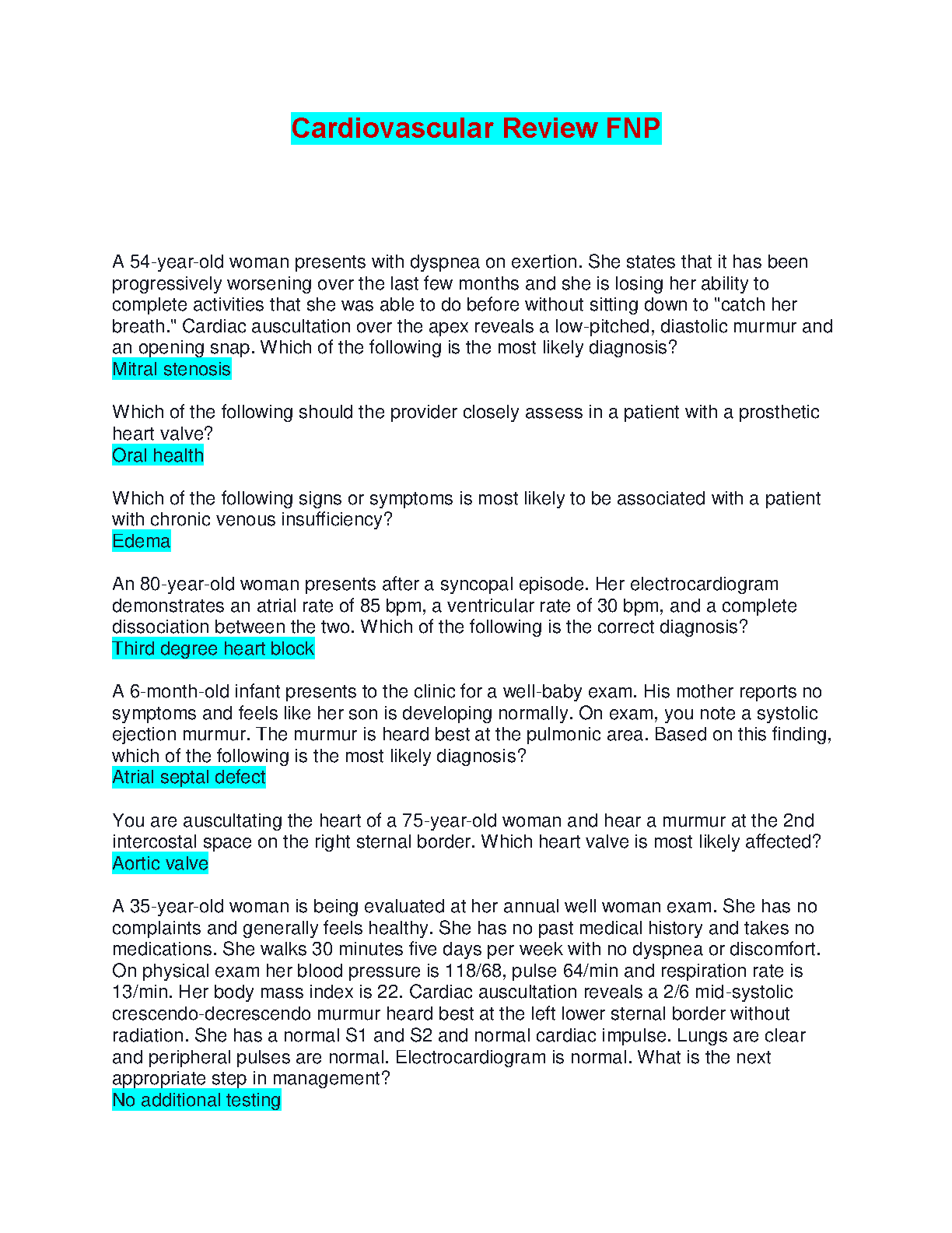 Ace your FNP certification exams (AANP & ANCC) with this comprehensive test bank focused on the Cardiovascular System. Sourced from the highly-acclaimed 'Family Nurse Practitioner Certification Intensive Review, 5th Edition' by Maria T. Codina Leik, this resource provides a curated set of practice questions and verified answers. Master key concepts such as mitral stenosis, heart block, chronic venous insufficiency, and other critical cardiac conditions. This study guide is designed to sharpen your diagnostic skills and ensure you're fully prepared to pass your board exams on the first try.