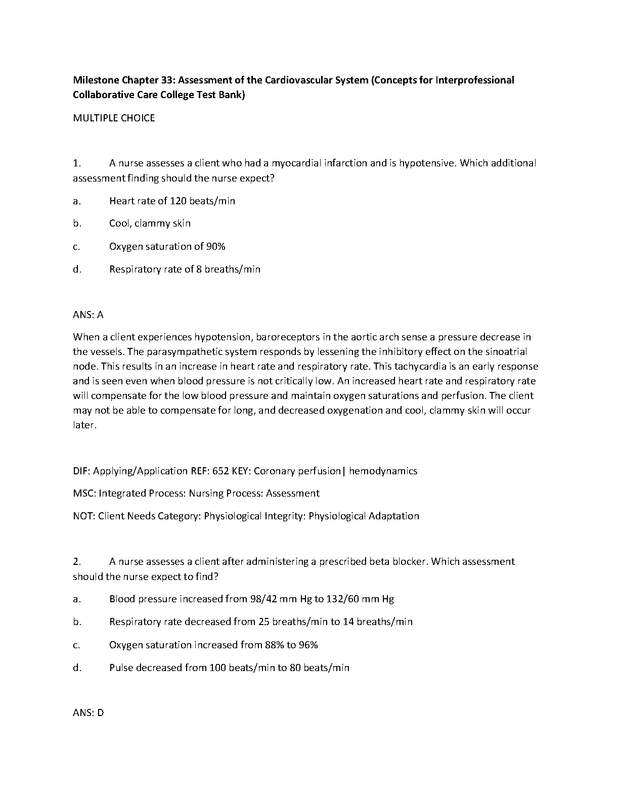 Milestone Chapter 33: Assessment of the Cardiovascular System (Concepts for Interprofessional Collaborative Care College Test Bank). DOWNLOAD on www.hackedexams.com INSTANTLY.