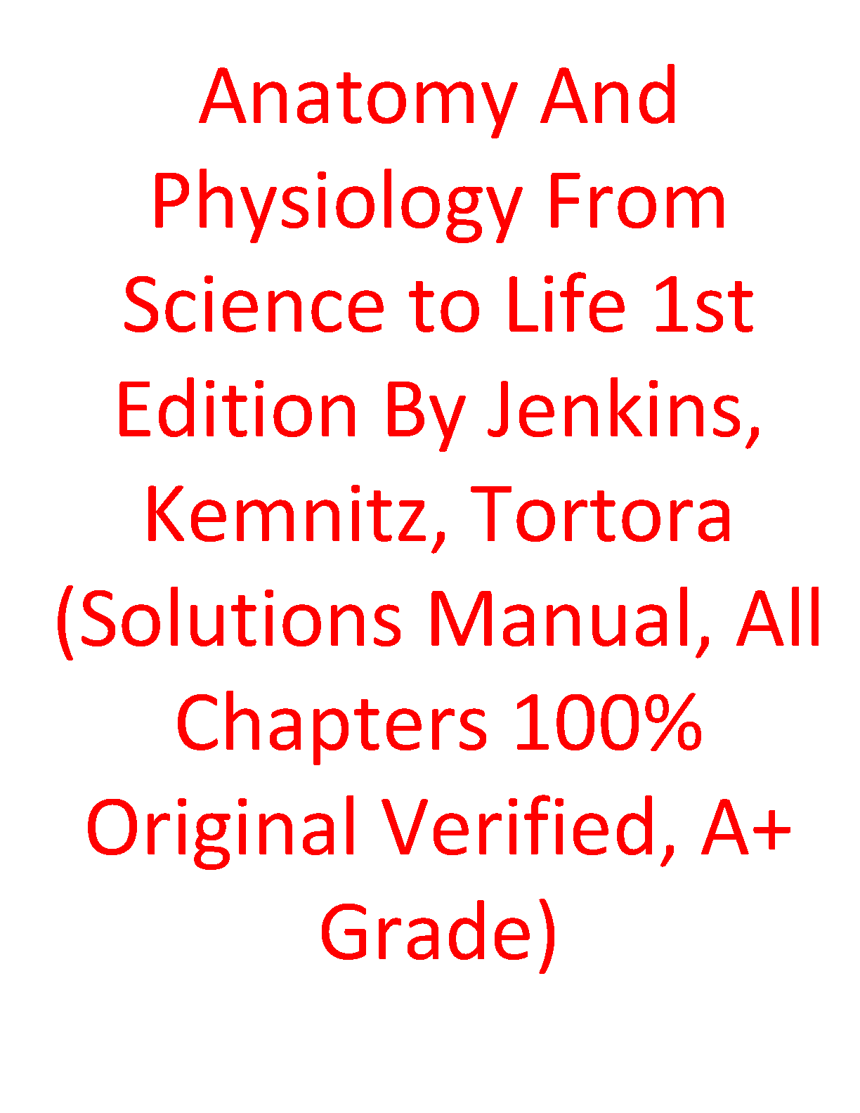 Gain a complete understanding of your course material with the official Solutions Manual for 'Anatomy and Physiology: From Science to Life,' 1st Edition by Jenkins, Kemnitz, and Tortora. This comprehensive guide provides detailed, step-by-step solutions for every chapter, ensuring you can accurately check your homework and grasp complex concepts. Verified for accuracy, this resource is your key to mastering the subject and achieving top grades on your exams.