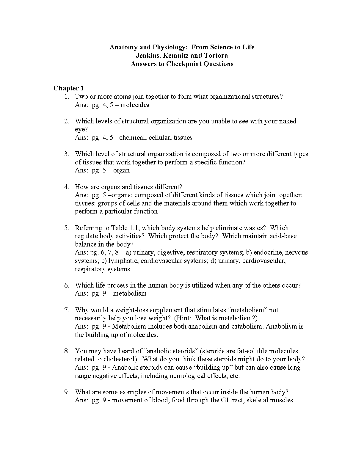 Solutions Manual for Anatomy and Physiology: From Science to Life, 1st Edition by Gail W. Jenkins, Christopher P. Kemnitz, Gerard J. Tortora