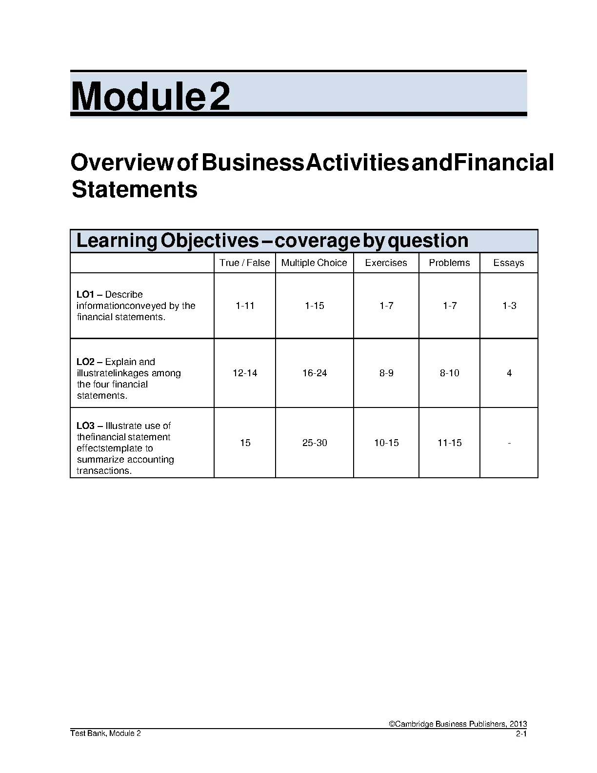 TEST BANK - Module 2: Introducing Financial Statements and Transaction Analysis