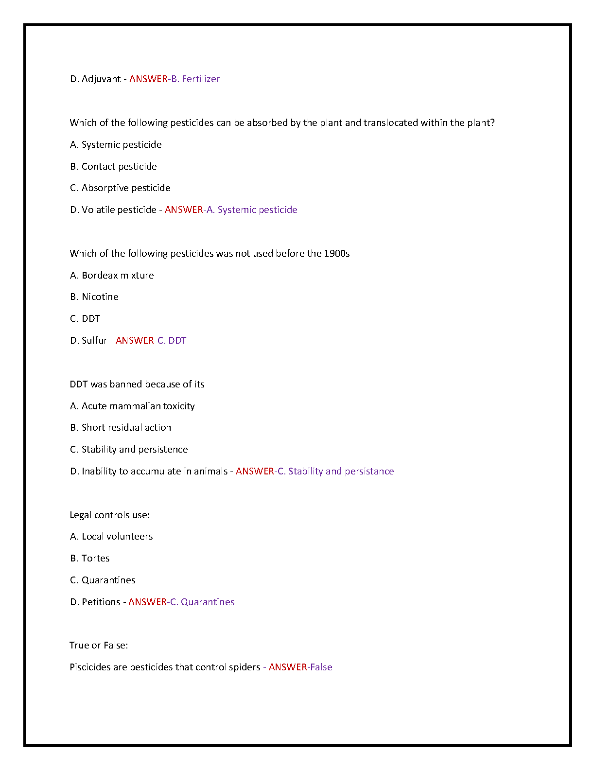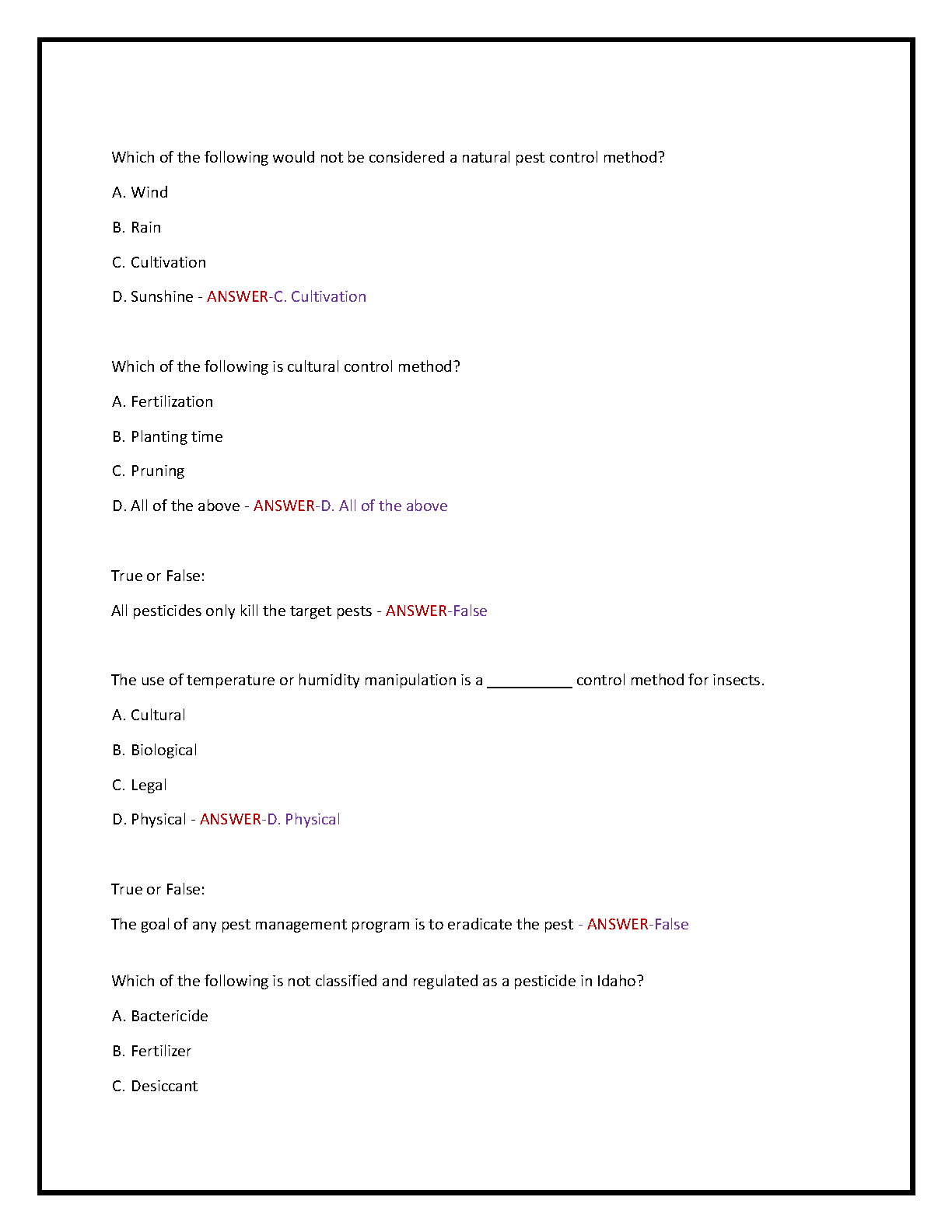 Ace your Idaho Pesticide Applicator Exam on the first try with our comprehensive 2025-2026 test bank! This A+ graded resource is packed with 180 authentic, exam-style questions and meticulously verified answers. It's fully updated to align with the latest Idaho Department of Agriculture pesticide licensing standards. Master all essential knowledge domains, including Pesticide Laws and Regulations, Label Comprehension, Application Equipment & Calibration, Safety Procedures & PPE, Environmental Protection, and Integrated Pest Management (IPM) principles. Designed to provide a realistic test simulation, this study guide equips you with the confidence and knowledge needed to pass your certification exam and apply pesticides safely and responsibly. Ideal for aspiring applicators, agricultural workers, landscapers, and pest control professionals.