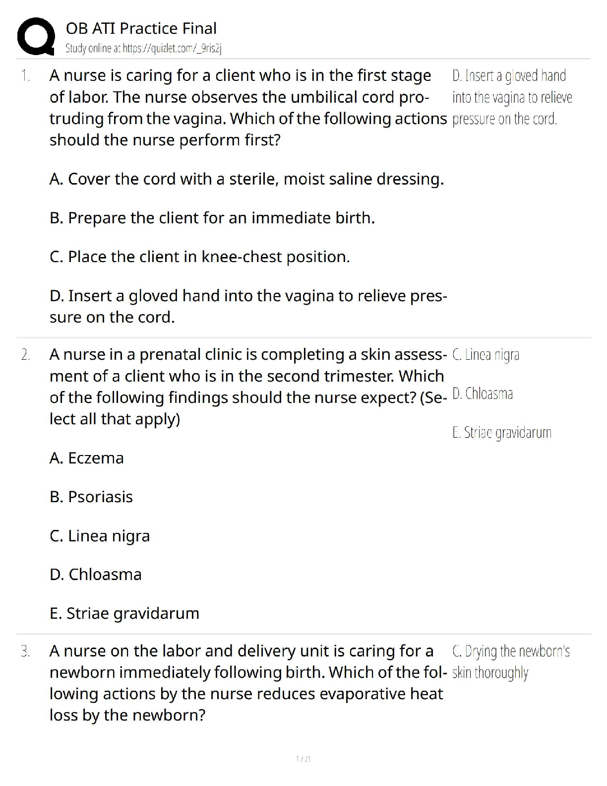 Prepare to excel in your Obstetrics ATI exam with our newly updated 2025/2026 Practice Final. This comprehensive resource features a detailed compilation of practice questions and answers, mirroring the format and difficulty of the real ATI OB exam. Covering critical topics from labor and delivery complications to prenatal and newborn care, this guide is expertly designed to boost your confidence and ensure you pass on your first attempt. Eliminate exam anxiety and avoid resits by mastering the essential content with this ultimate study tool.