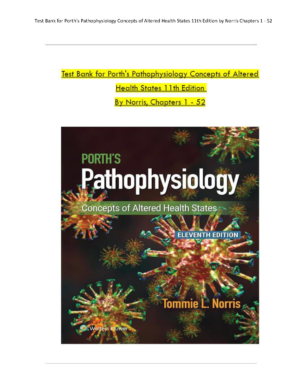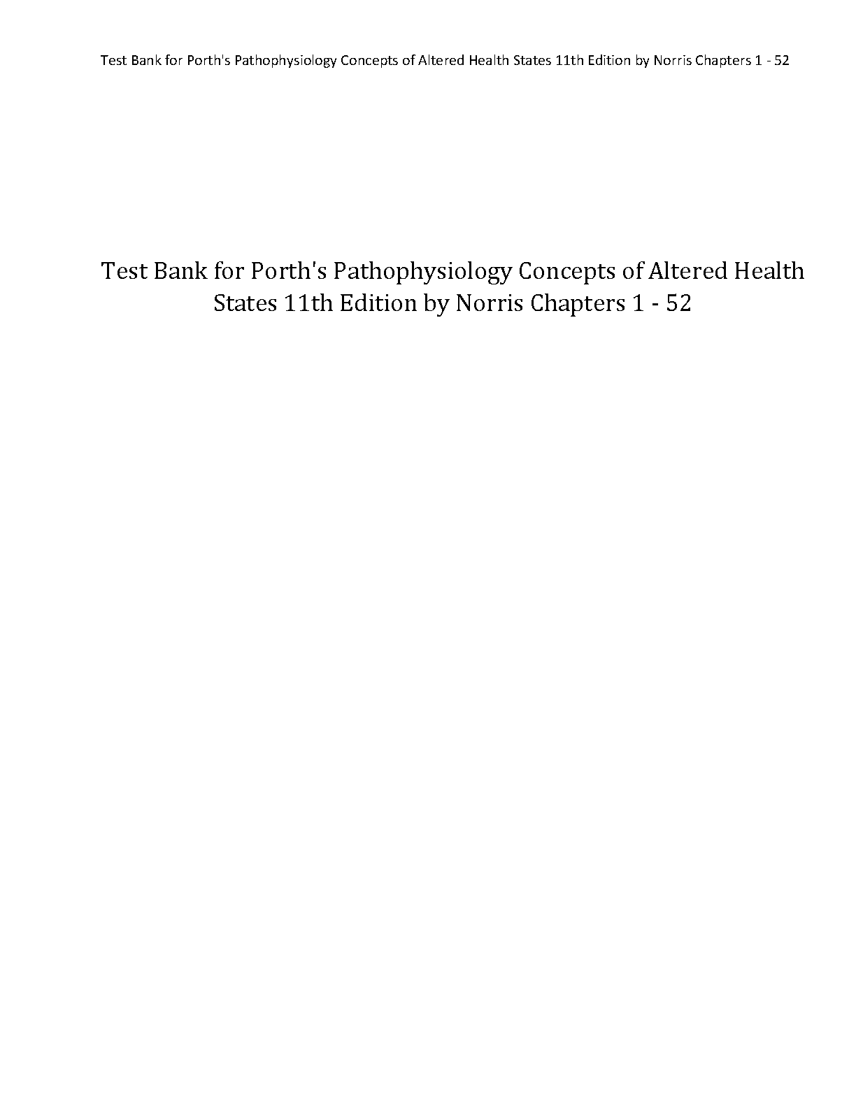 Comprehensive Test Bank for Porth's Pathophysiology: Concepts of Altered Health States, 11th Edition by Tommie L. Norris