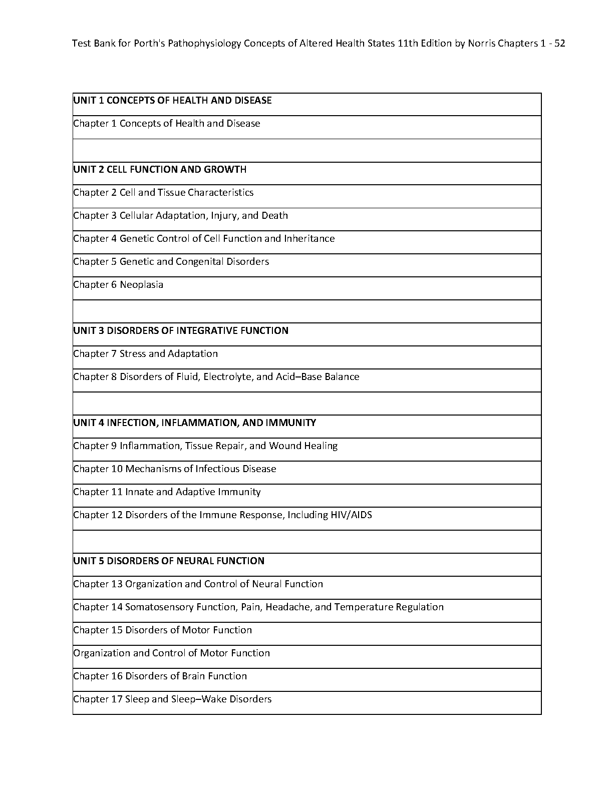 Master the complexities of pathophysiology with the official Test Bank for the 11th Edition of Porth's Pathophysiology: Concepts of Altered Health States by Tommie L. Norris. This extensive resource covers all 52 chapters, providing a vast collection of exam-style questions, complete with detailed rationales and answers. It's the ultimate study tool designed to help you ace your exams, deepen your understanding of altered health states, and build a strong foundation for your nursing career. Get immediate access to the materials you need to study smarter and achieve top grades.