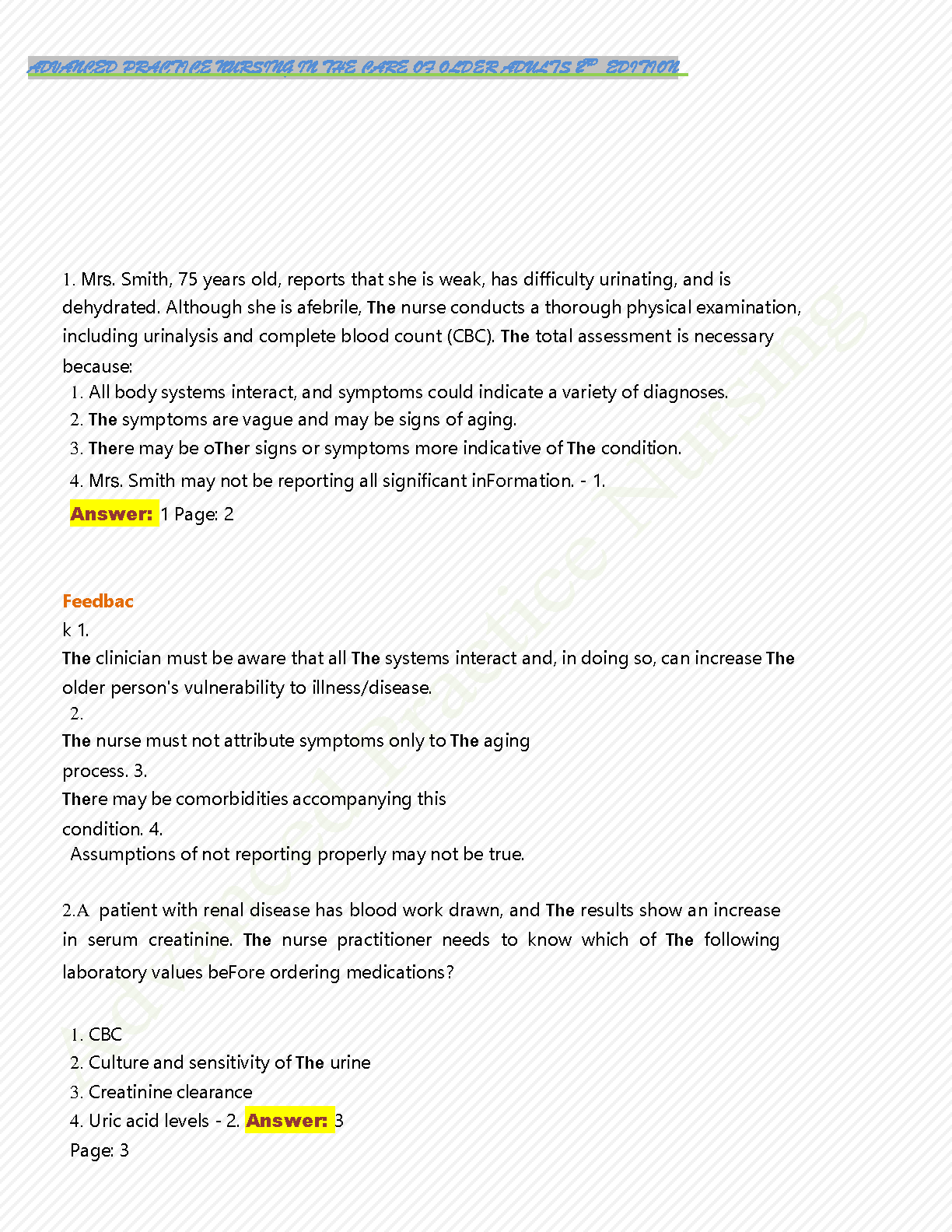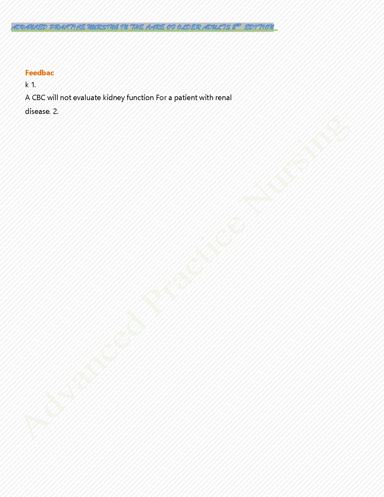 Test Bank for Advanced Practice Nursing in the Care of Older Adults, 2nd Edition By Laurie Kennedy-Malone, Lori Martin-Plank, Evelyn Duffy
