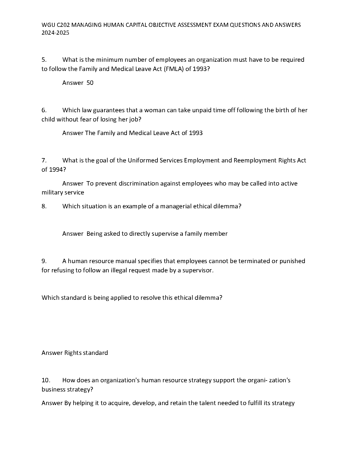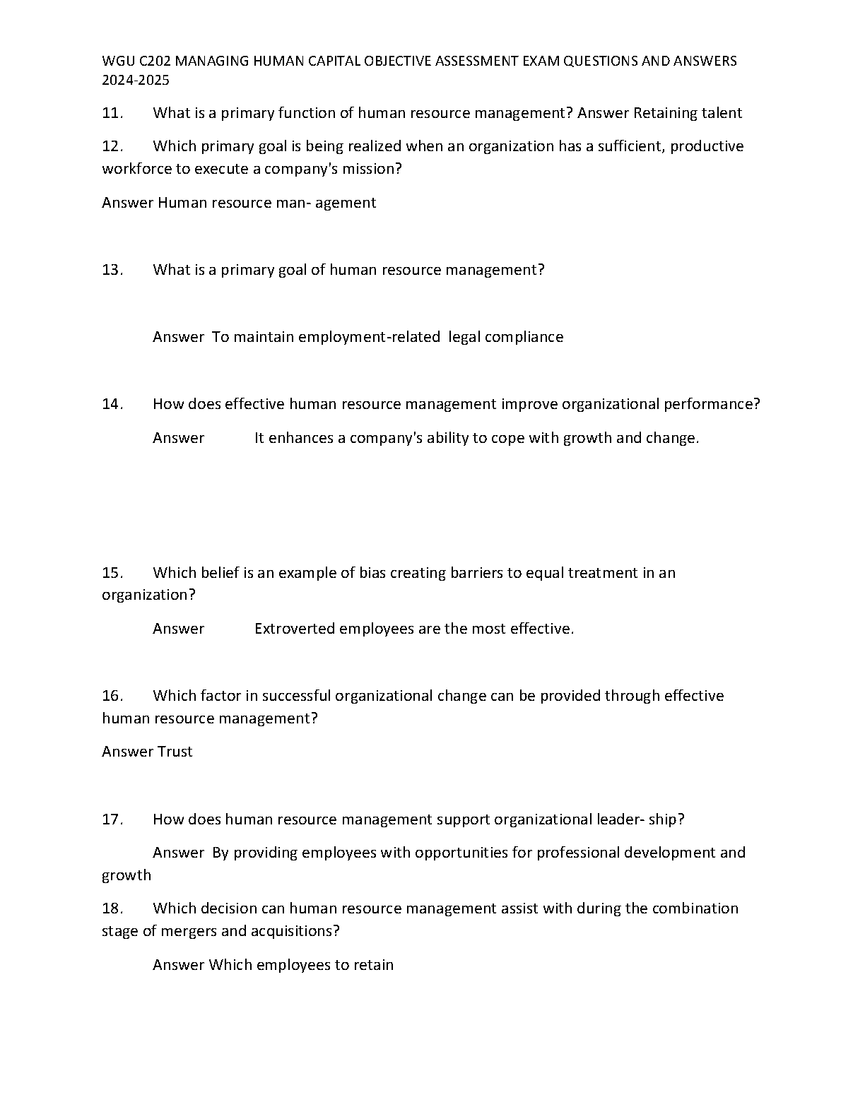 WGU C202 Managing Human Capital Objective Assessment Test Bank | Latest 2025/2026 Exam Questions & Verified Answers