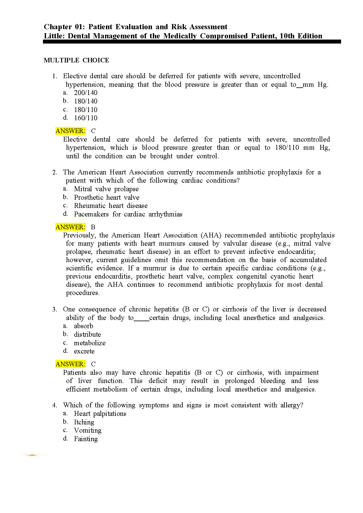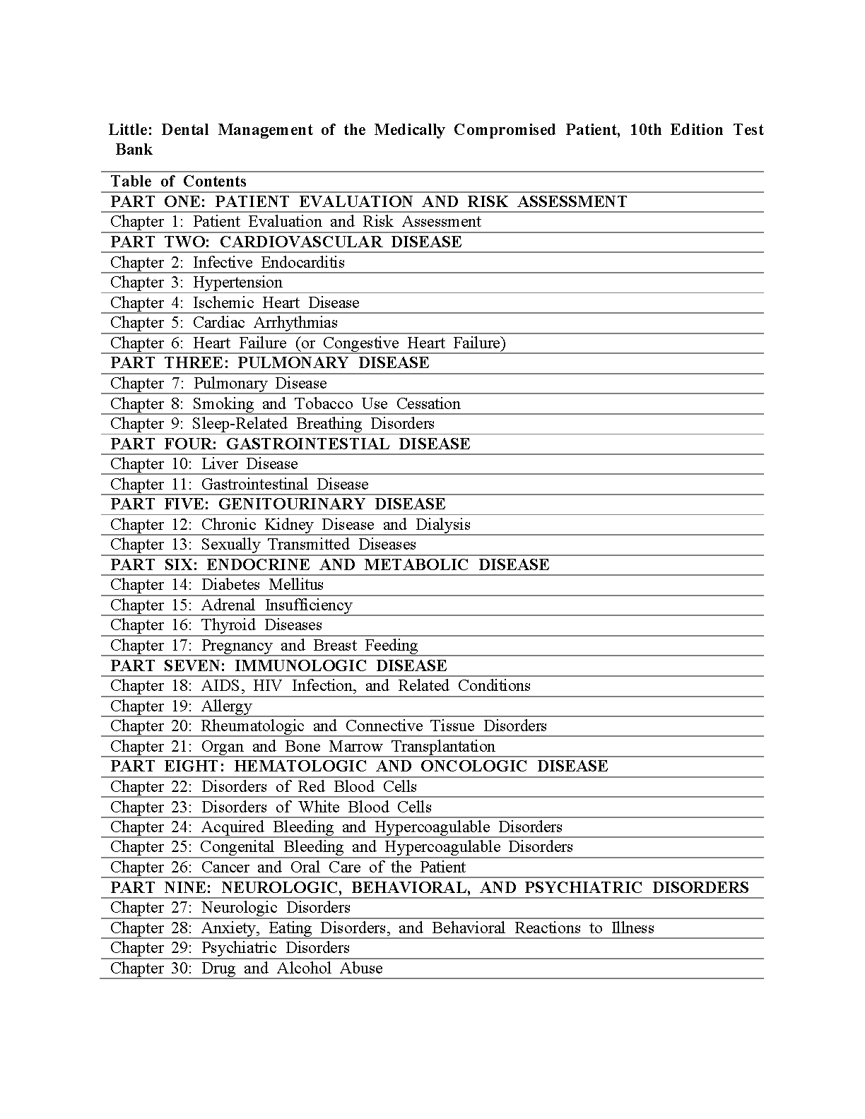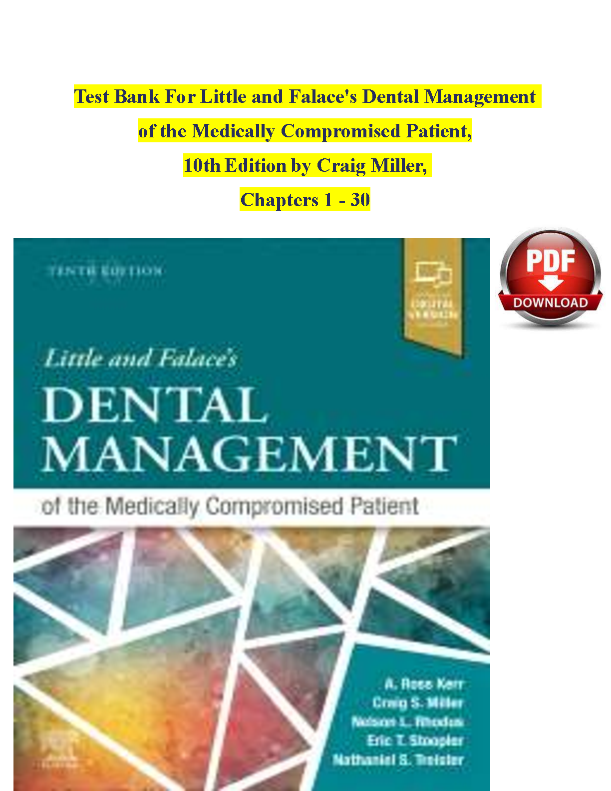 Test Bank for Little and Falace's Dental Management of the Medically Compromised Patient, 10th Edition by A. Ross Kerr, Craig S. Miller, Nelson L. Rhodus, Eric T. Stoopler, & Nathaniel S. Treister