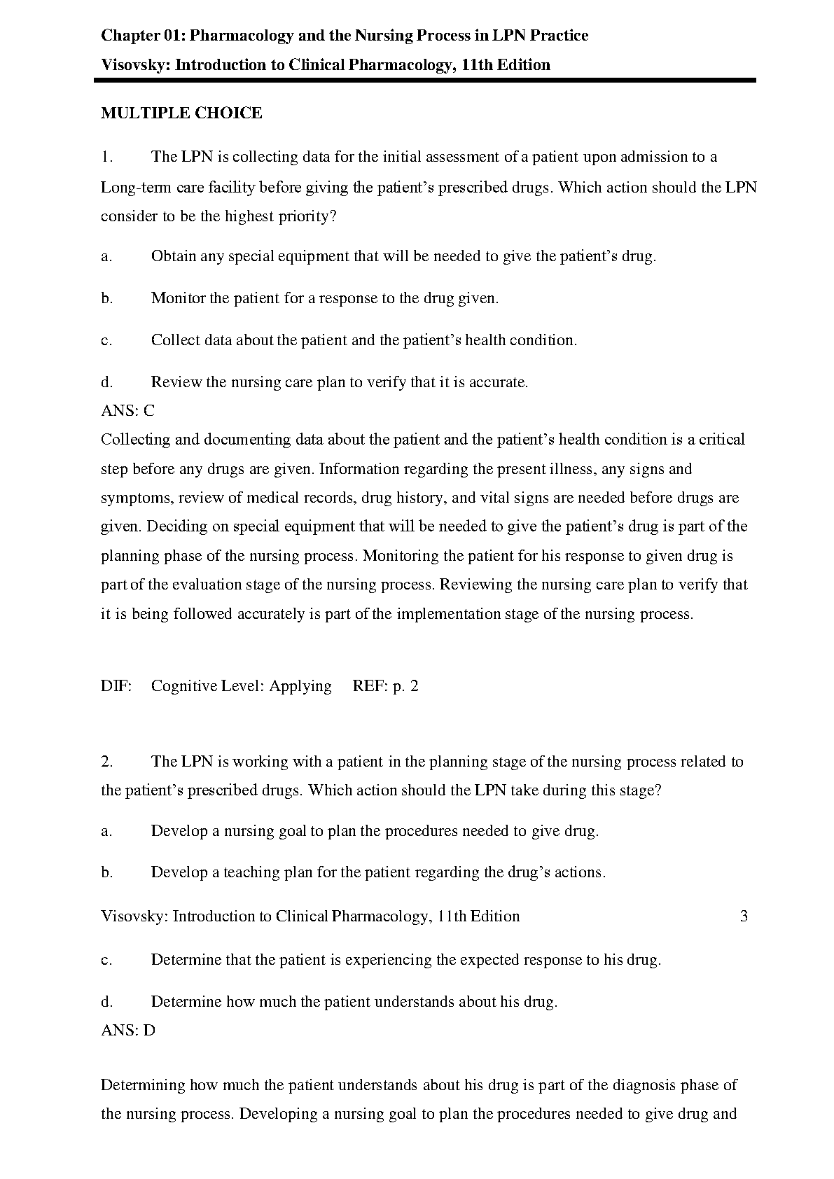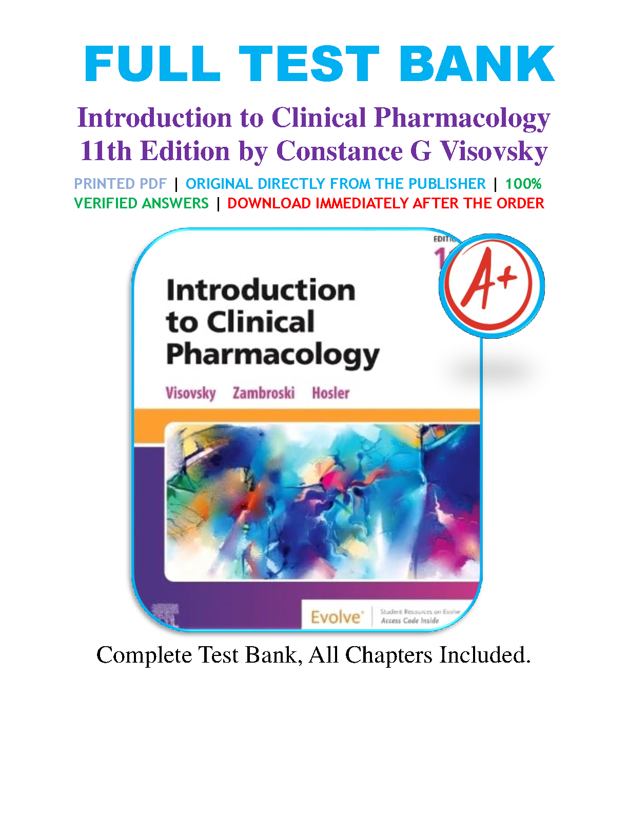 Test Bank for Introduction to Clinical Pharmacology, 11th Edition by Constance G. Visovsky, Cheryl H. Zambroski & Shirley P. Hosler