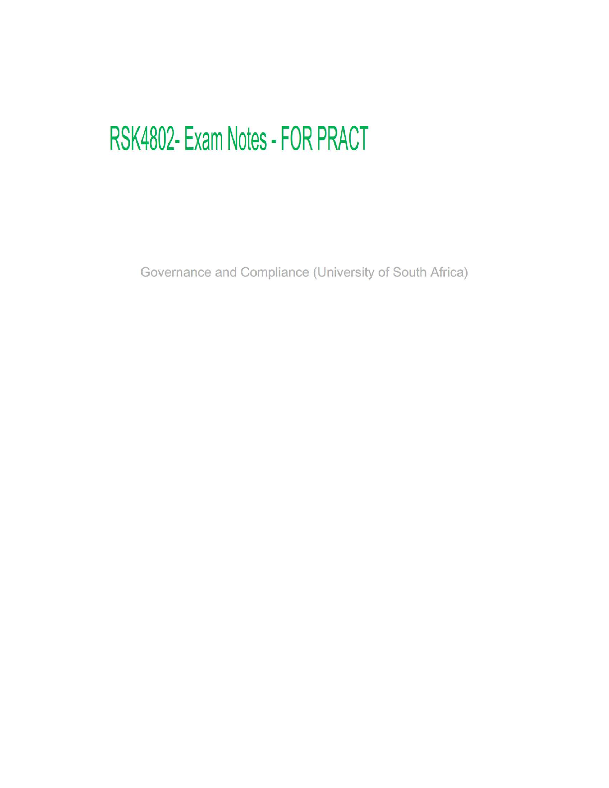 Master RSK4802 Governance and Compliance: Latest 2025/2026 Exam Notes for UNISA Students | Ace Your Exams and Avoid Resits