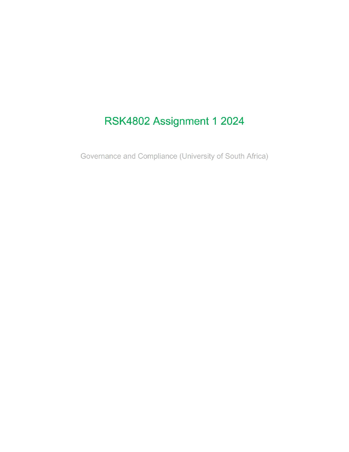 Master RSK4802: Governance & Compliance Assignment 1 (2024) Detailed Solutions | Unisa 2025-2026 Exam Prep Guide