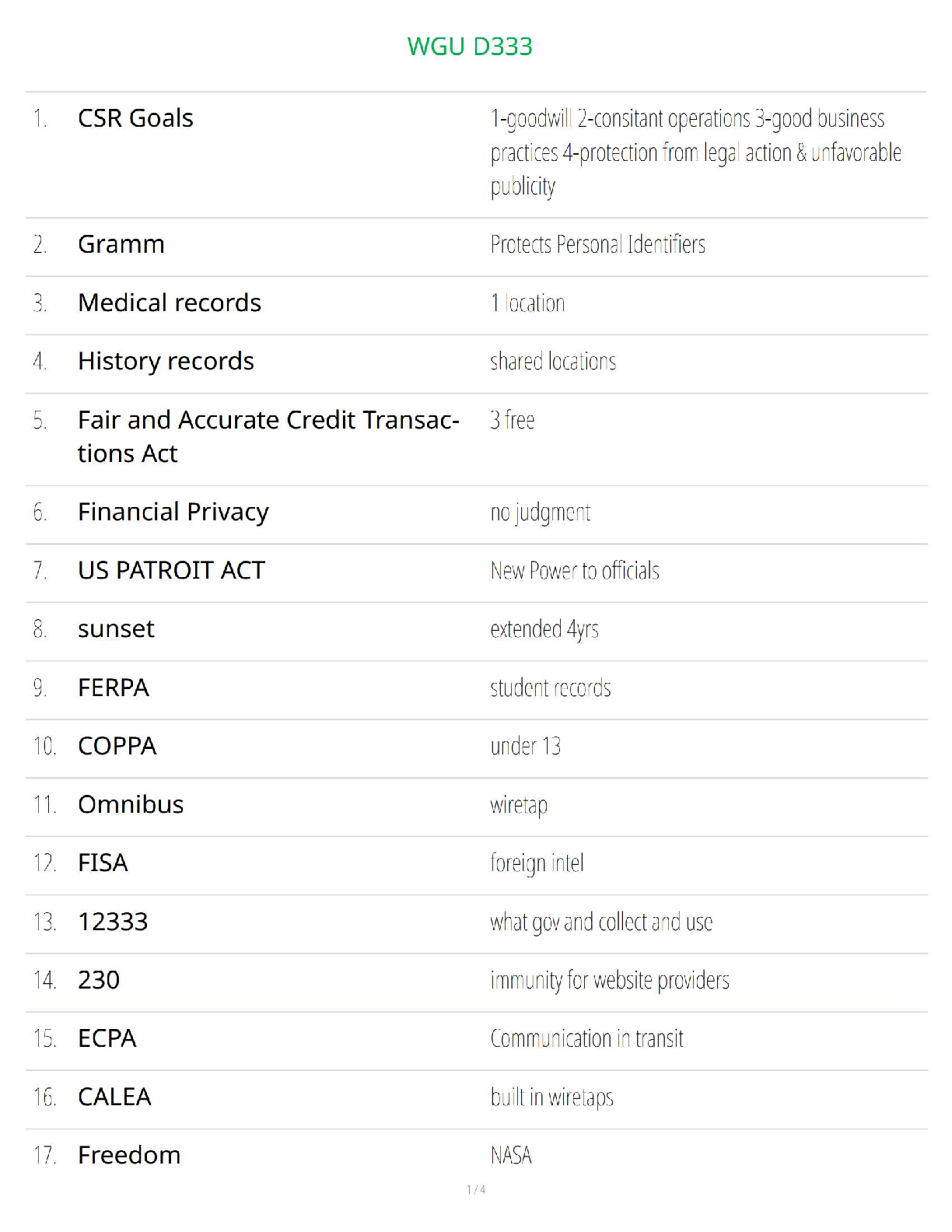Prepare to excel in your WGU D333 Ethics in Technology course with our ultimate study guide for the 2025/2026 academic year. This comprehensive resource is expertly designed to help you master key concepts and pass your exam on the first attempt. Our guide breaks down complex topics into easy-to-understand notes, covering crucial areas such as Corporate Social Responsibility (CSR), major privacy laws like FERPA and COPPA, and significant legislation including the US PATRIOT Act, FISA, and the Fair and Accurate Credit Transactions Act. Avoid resits and build a strong foundation in tech ethics with these detailed and targeted exam elaborations. Get the confidence you need to succeed in D333!