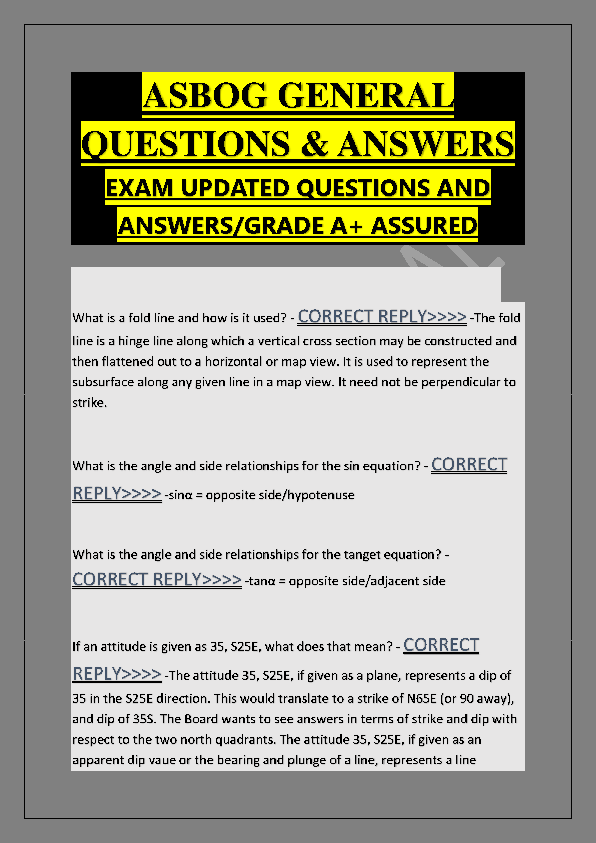 ASBOG General Exam Test Bank: Latest Updated Questions and Verified Answers for A+ Result