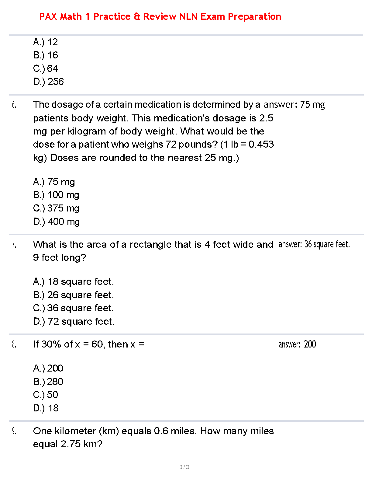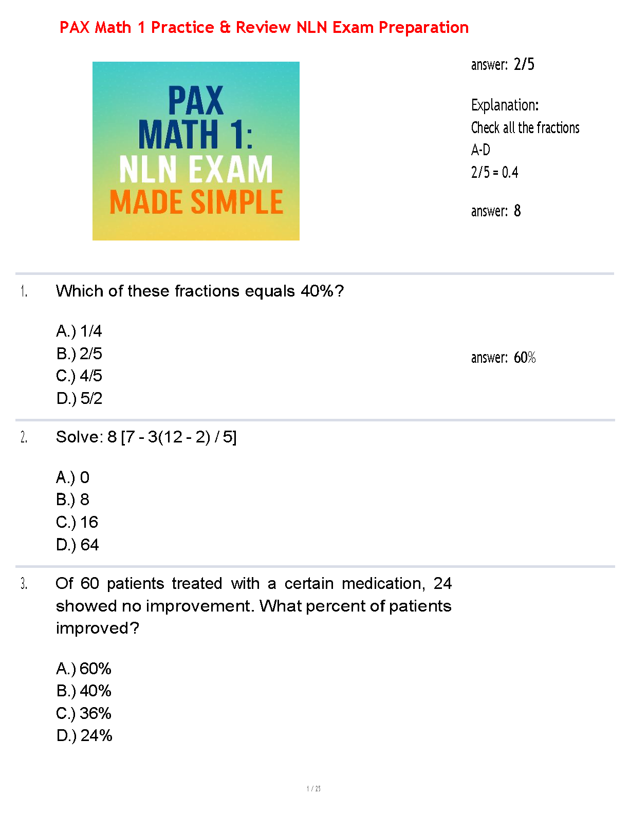 Get ready to conquer the math section of the NLN Pre-Admission Exam (PAX) with our newly updated 2025/2026 study guide. This comprehensive resource is packed with practice questions that mirror the actual test, covering all essential topics like fractions, percentages, algebra, and more. Each question comes with a detailed, step-by-step explanation to help you understand the concepts, not just memorize the answers. This is the ultimate tool to build your confidence, sharpen your skills, and ensure you pass the PAX Math exam on your very first try. Avoid the stress of resits and start your nursing school journey strong!
