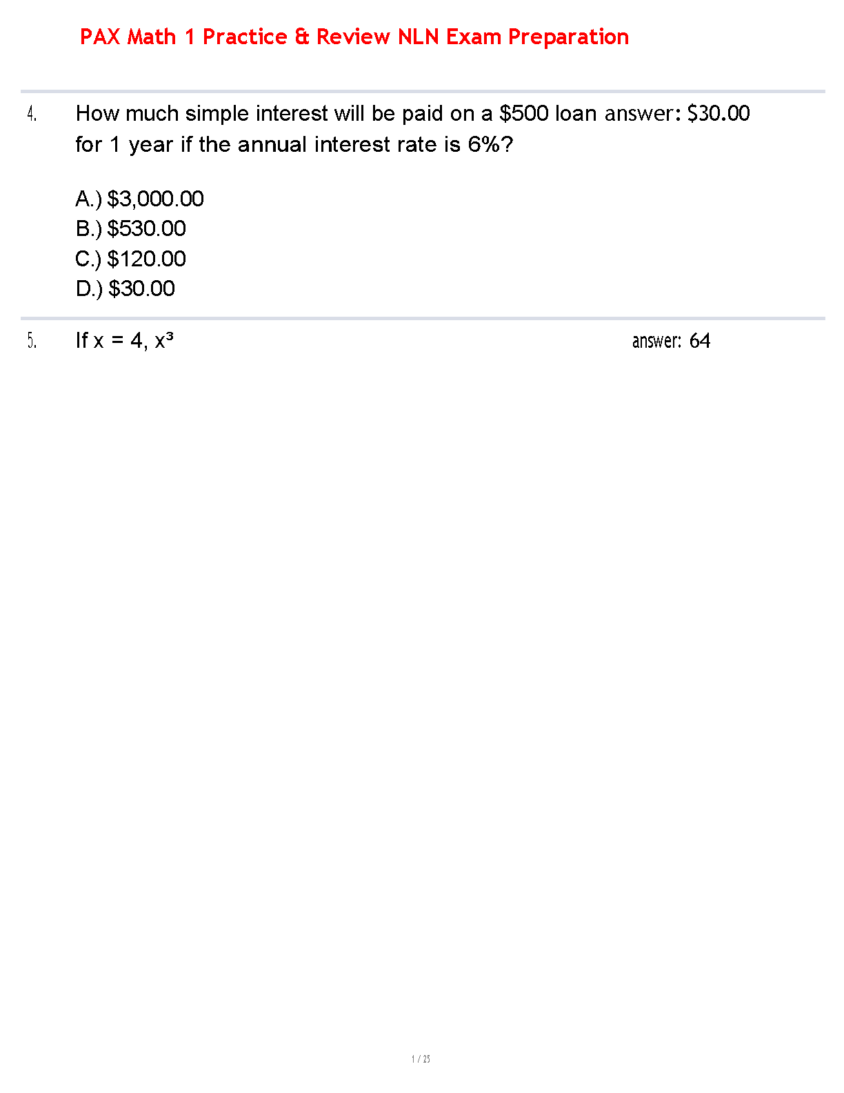 PAX NLN Math 1 Exam Prep 2025/2026: Master the Test with Our Comprehensive Q&A Study Guide and Avoid Resits