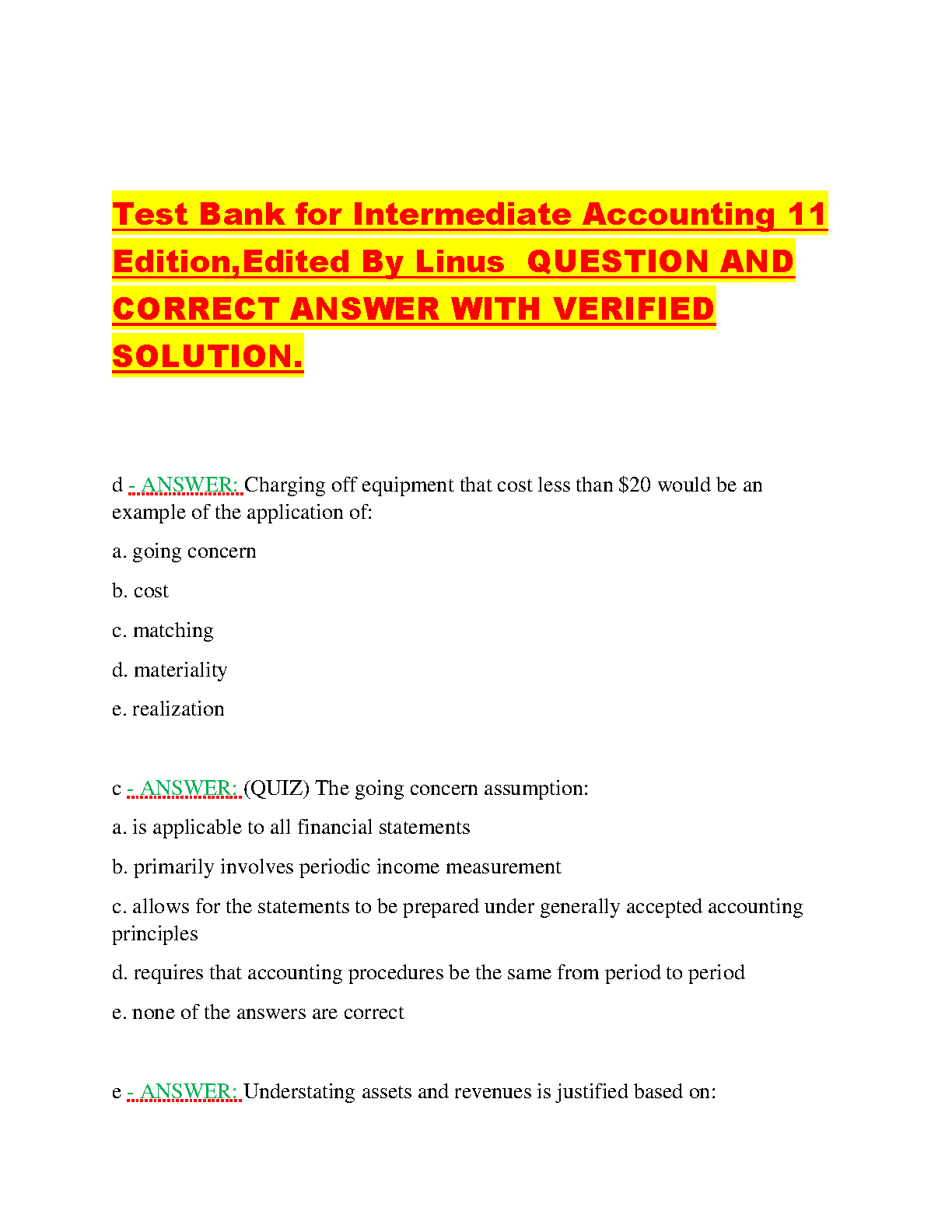 Master the complexities of Intermediate Accounting with the official Test Bank for the 11th Edition by Kieso, Weygandt, and Warfield. This comprehensive resource is packed with a vast collection of exam-style questions, complete with detailed, verified answers and solutions. It is the ultimate study tool designed to help you ace your exams, grasp core accounting principles, and succeed in your course. Covering all chapters of the textbook, this test bank allows you to practice and test your knowledge on key topics, ensuring you are fully prepared for any question that comes your way.