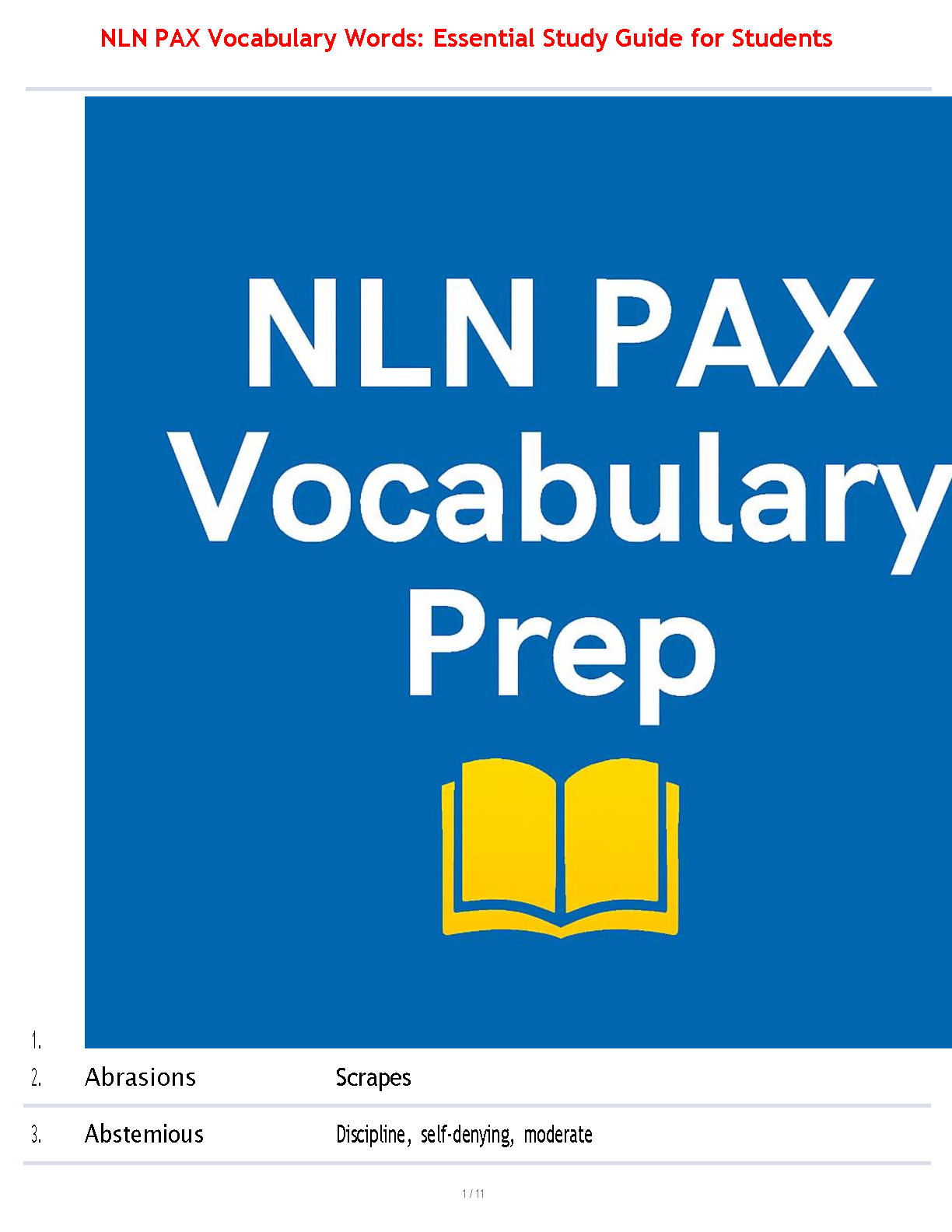 Master the verbal section of the nursing entrance exam with our brand-new NLN PAX Vocabulary Study Guide for the 2025/2026 academic year. This comprehensive guide provides an essential list of key vocabulary words and their definitions, specifically curated to boost your score. It's the ultimate tool to help you pass the NLN PAX on your first attempt, avoid costly resits, and take a confident step toward your nursing career.