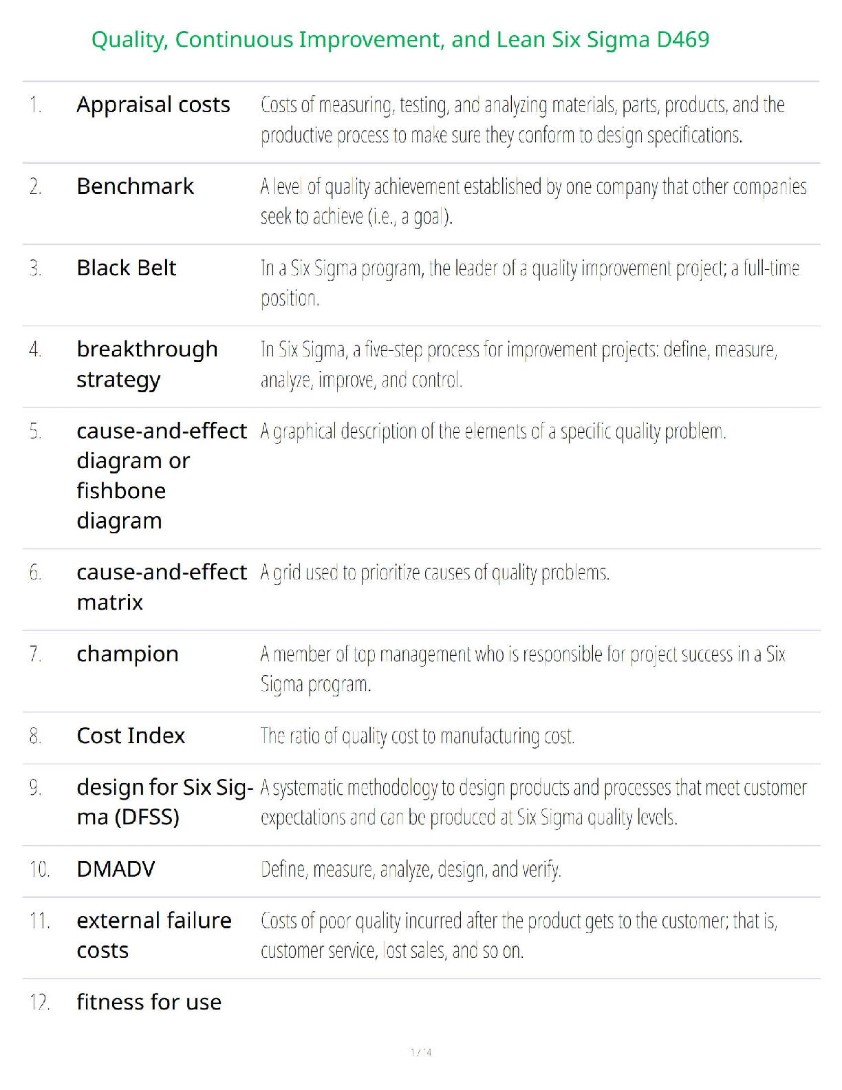 Master the essential concepts of WGU D469: Quality, Continuous Improvement, and Lean Six Sigma with our ultimate 2025/2026 study resource. This comprehensive guide breaks down all the critical terminology and frameworks you need to know, from Appraisal Costs and DMAIC to Six Sigma methodologies and Cost Indexing. Designed to help you ace your exam on the very first attempt and avoid costly resits, this guide covers all key topics in-depth. Stop struggling and start succeeding in your operations management course today!