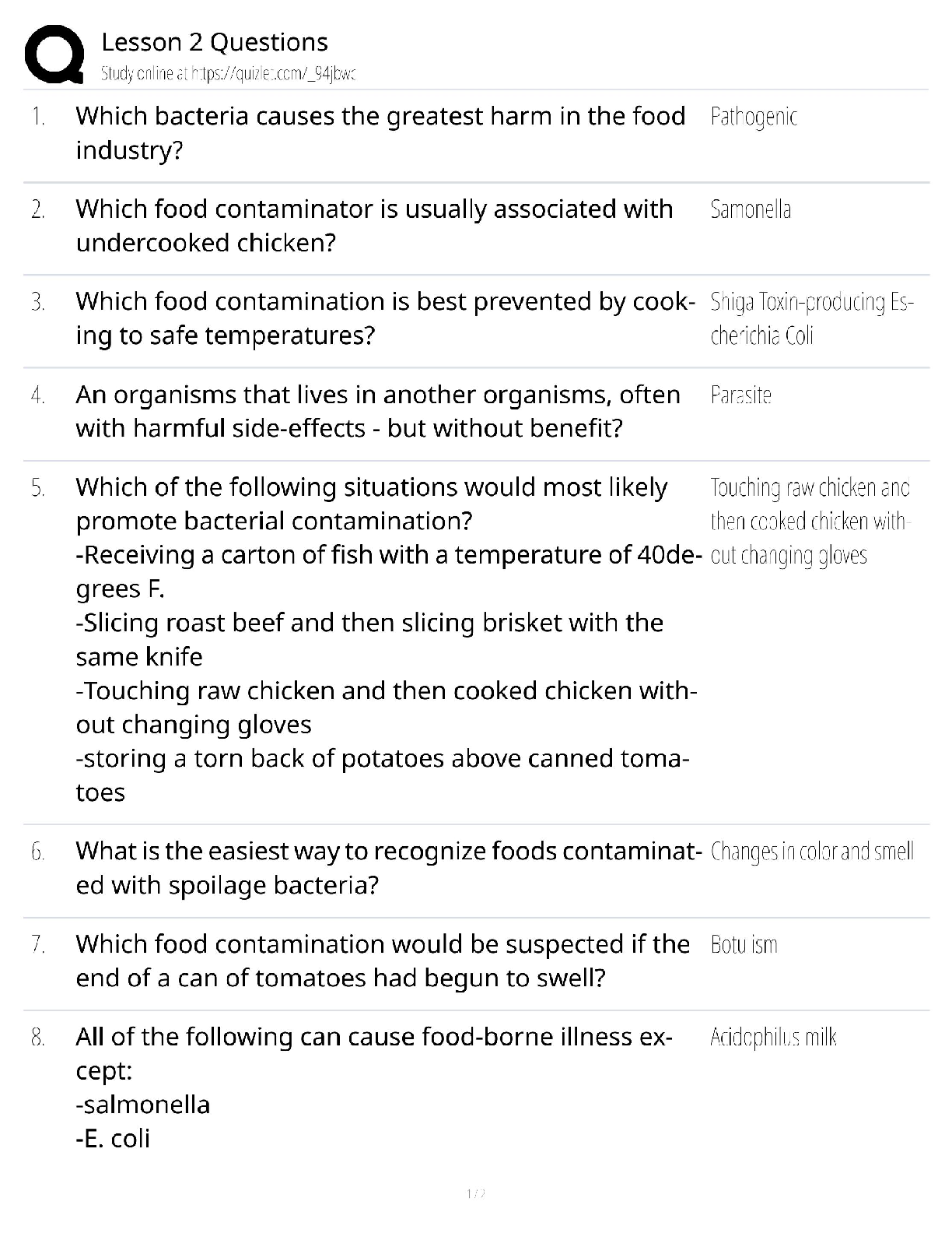 Master the crucial concepts of food safety with our comprehensive test bank for Lesson 2 of the Food Handler Certification exam. This latest 2025/2026 resource is expertly designed to help you pass on your very first attempt, avoiding costly resits. Dive deep into key topics including pathogenic bacteria, food contamination, cross-contamination prevention (Salmonella, E. coli), and identifying food-borne illnesses. Each question comes with a verified answer, providing you with the ultimate study tool to gain your certification with confidence. Download now and take the first step towards acing your exam!