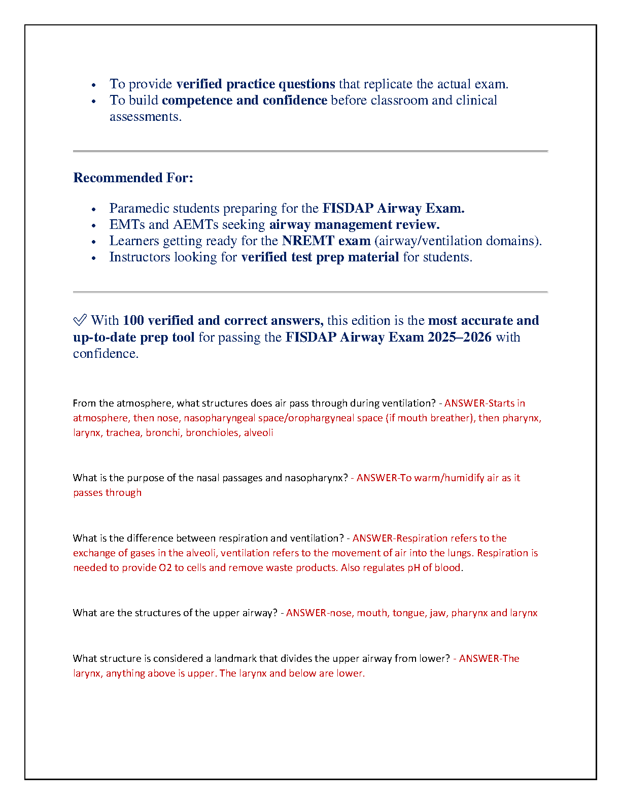 FISDAP Airway Exam 2025-2026 Edition | 100 Verified Questions & A-Grade Answers for Paramedics