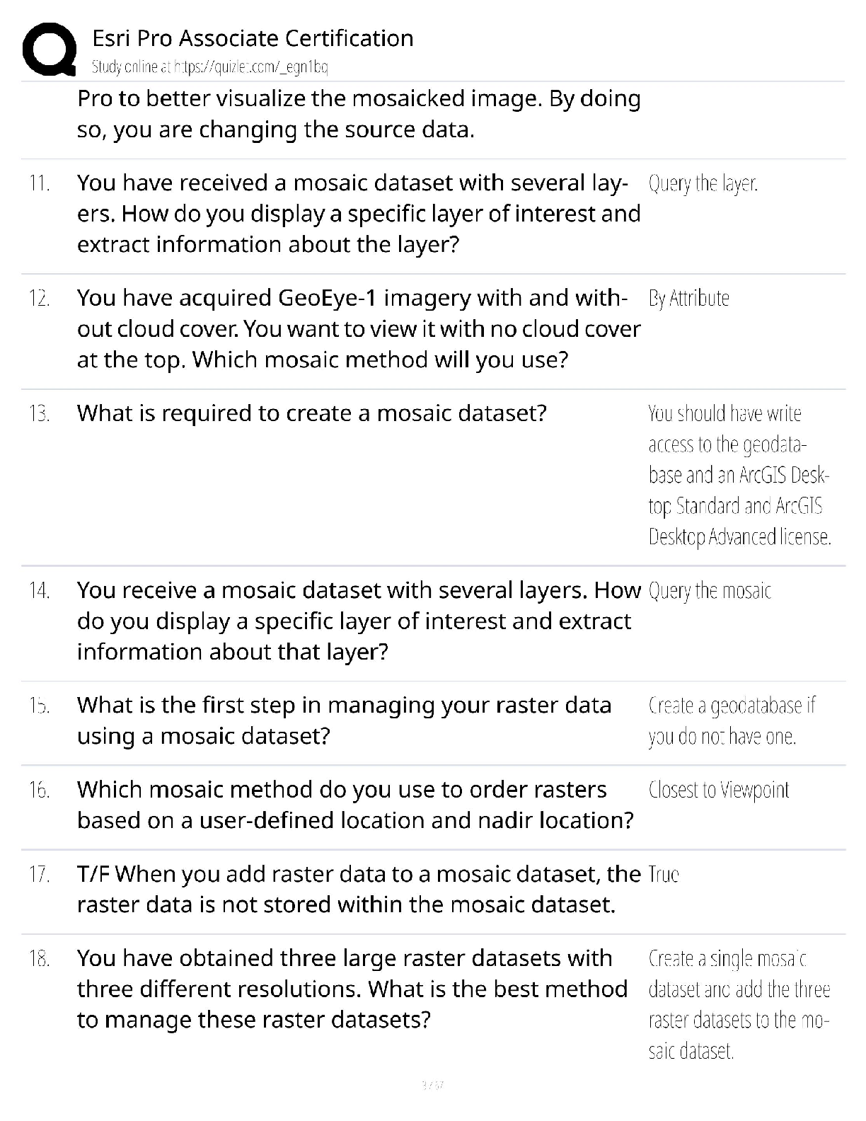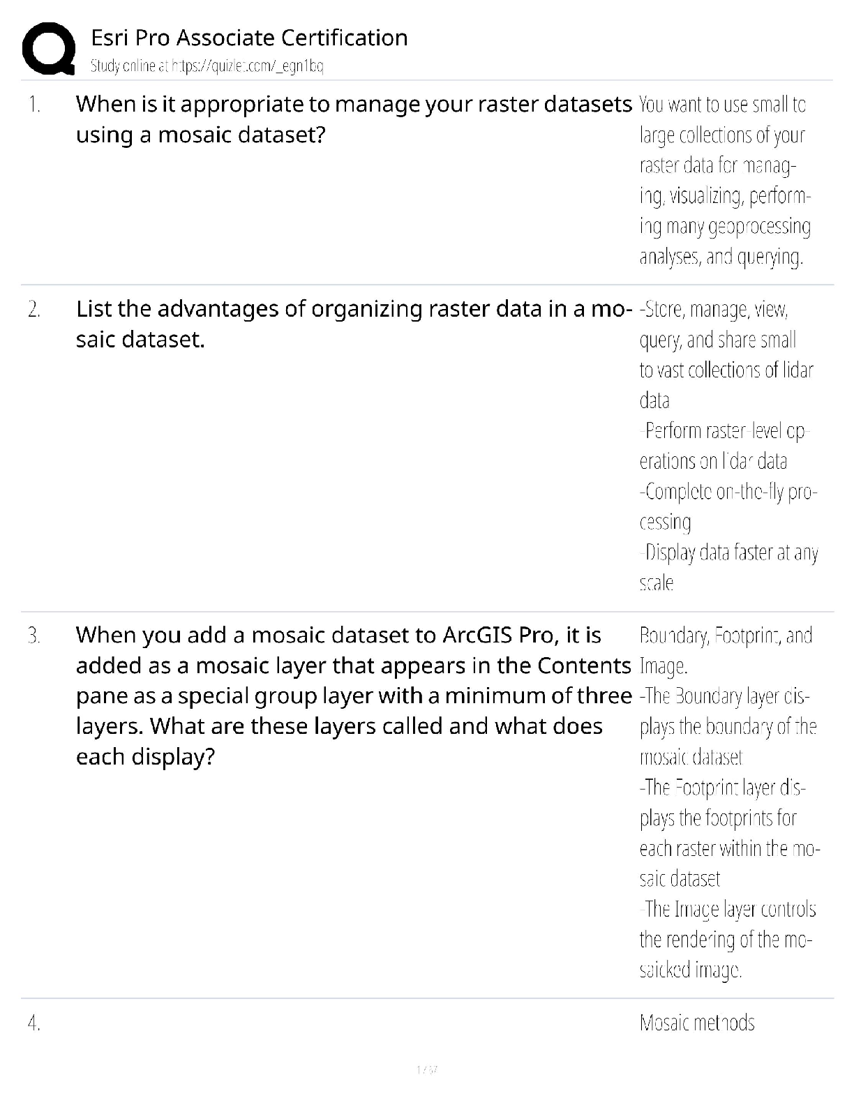 Ace your Esri ArcGIS Pro Associate 2024 Certification exam with our comprehensive test bank! This essential study resource features a meticulously curated collection of exam-style questions and detailed answers, covering all critical topics you need to master. Dive deep into concepts like raster data management, mosaic datasets, geoprocessing, visualization, and more. Designed to mirror the actual exam format, this Q&A guide is your key to building confidence, identifying knowledge gaps, and ensuring you pass the ArcGIS Pro Associate certification on your first try. Get the edge you need to become an Esri certified professional.
