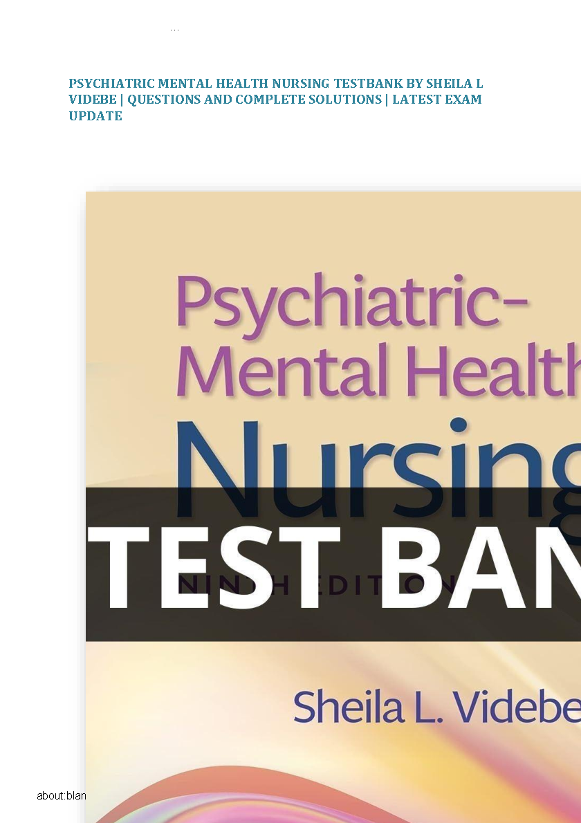 Test Bank for Psychiatric-Mental Health Nursing, 9th Edition by Sheila L. Videbeck | Complete Questions & Answers