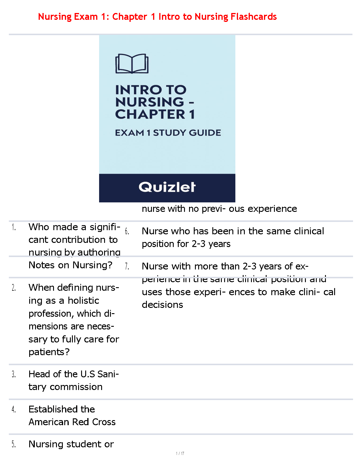 Intro to Nursing Exam 1 Study Guide: Chapter 1 Flashcards | Ace Your 2025/2026 Exams