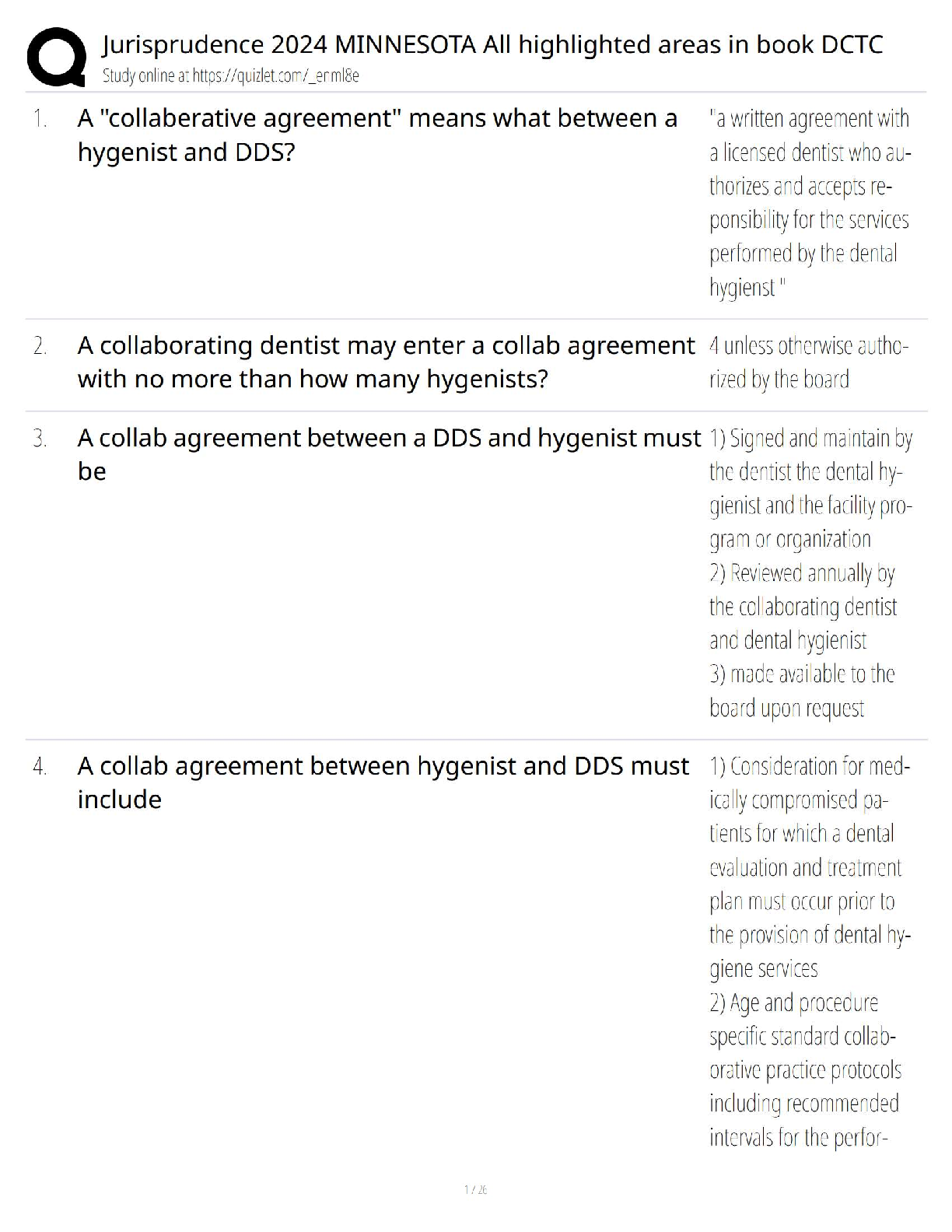 Master the 2024 Minnesota Dental Jurisprudence Exam and pass on your first attempt with this essential test bank. Sourced from DCTC materials, this study guide provides a complete collection of exam-style questions and verified answers. It covers critical topics such as the legalities of collaborative agreements between DDS and hygienists, ensuring you're fully prepared. Study smart, boost your confidence, and secure your license without the stress of resits.