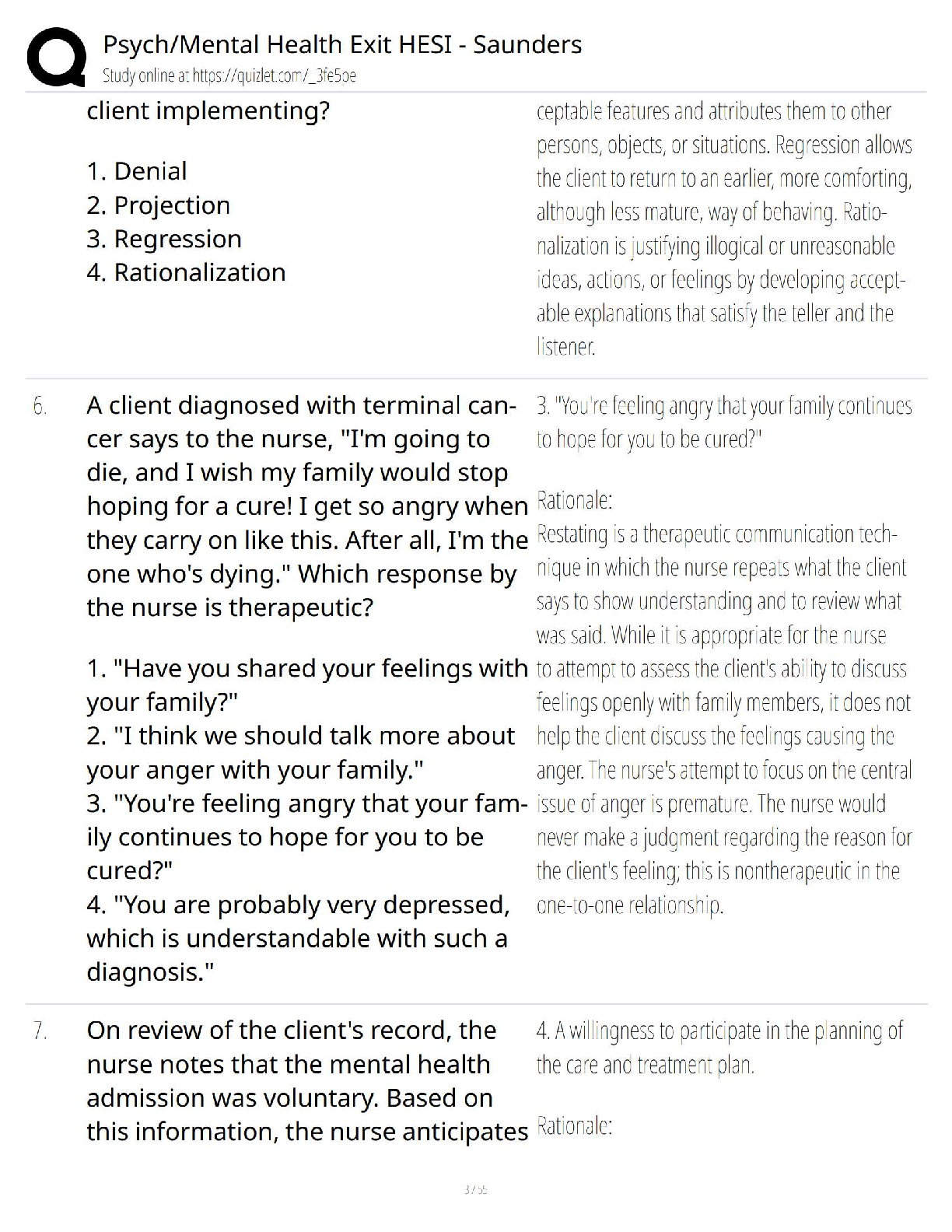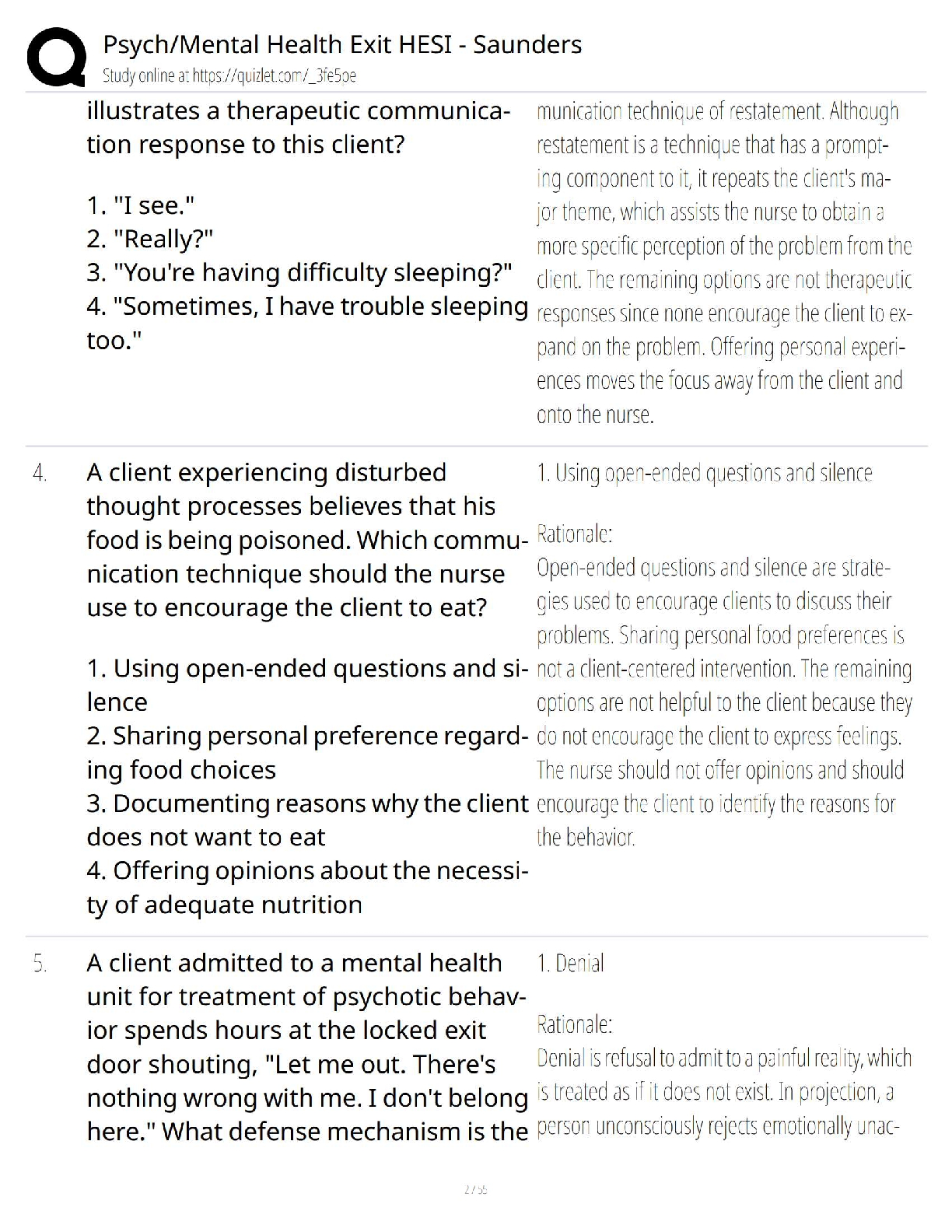HESI Exit Exam Test Bank: Psych/Mental Health Nursing Questions & Answers with Rationales | Based on Saunders 9th Edition by Linda Anne Silvestri & Angela E. Silvestri