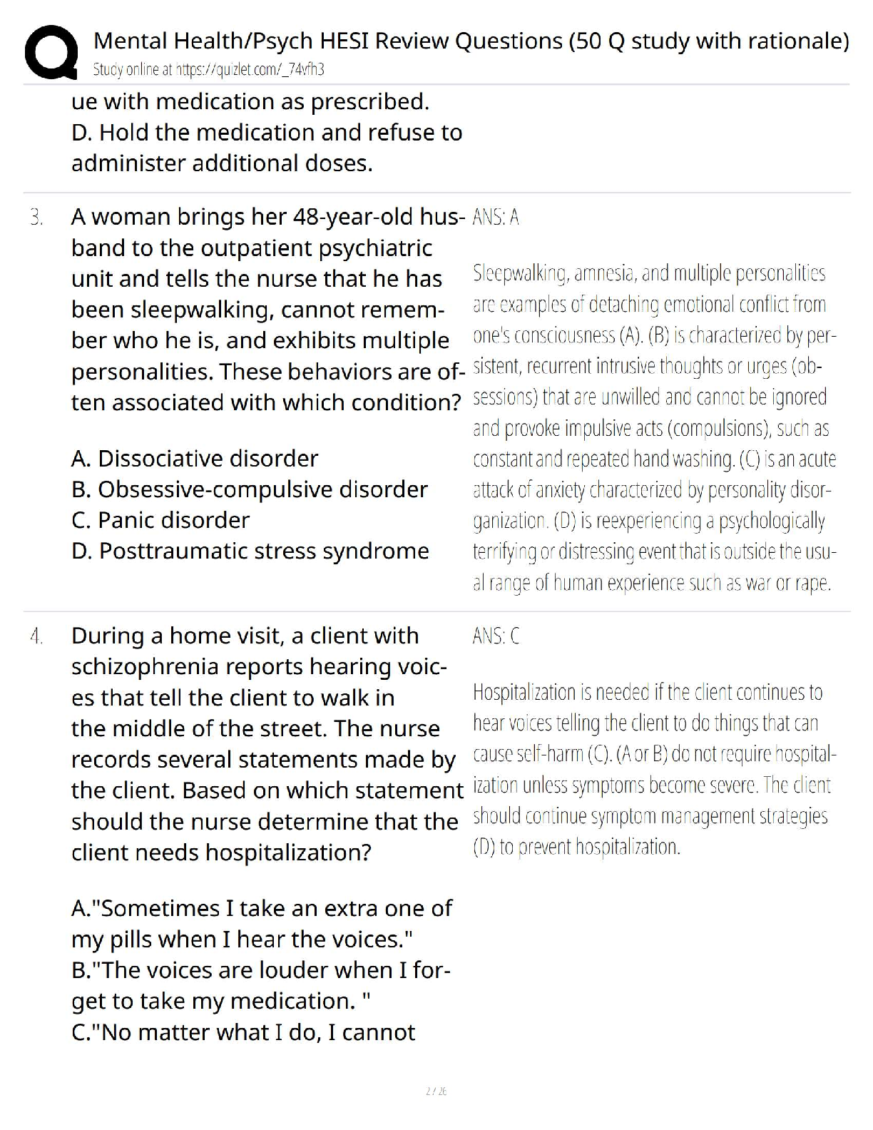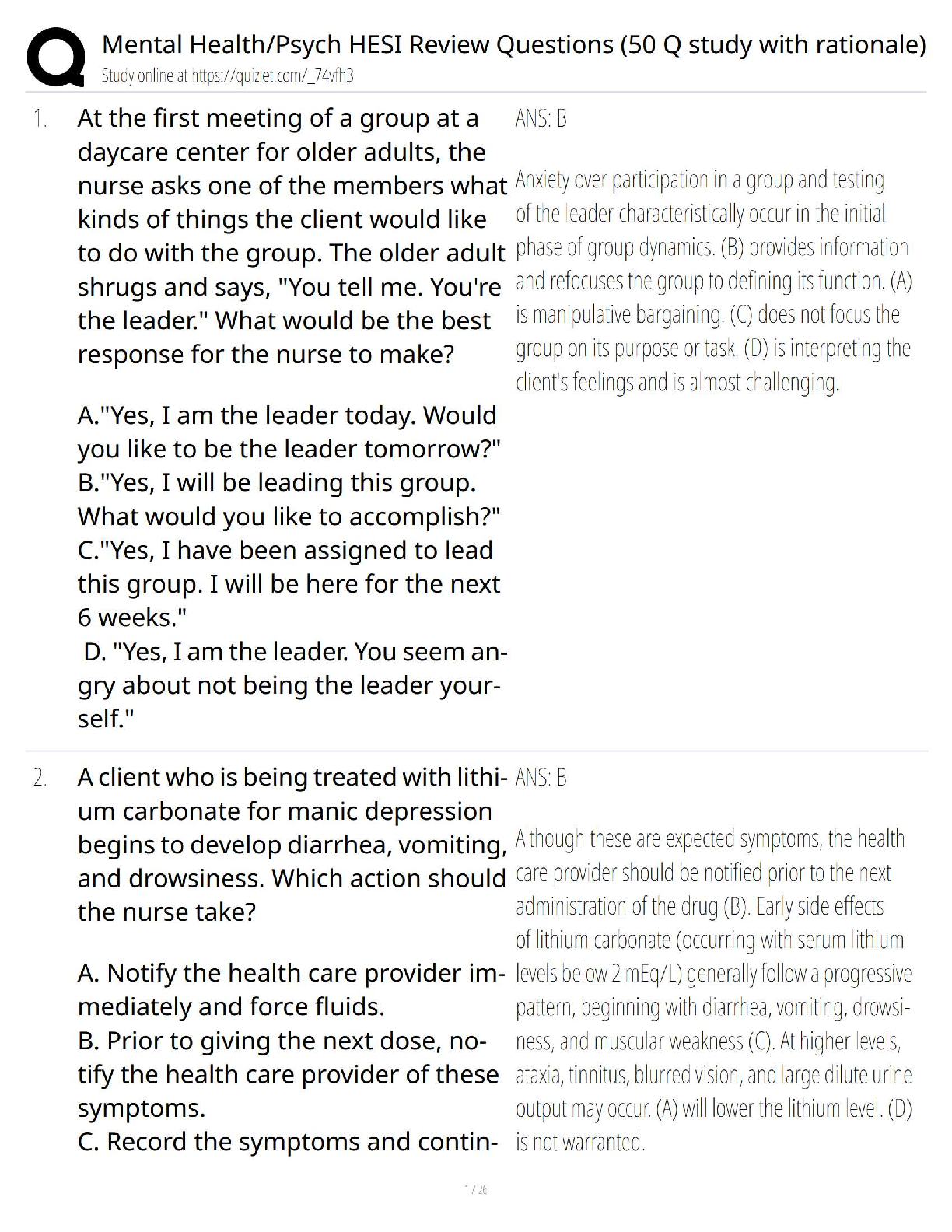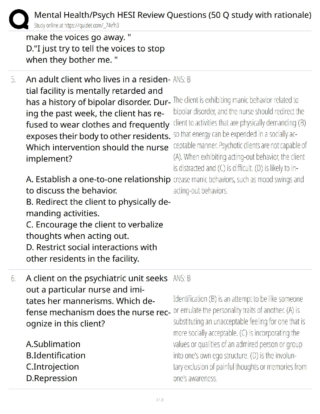 Master the HESI Mental Health & Psychiatric Nursing exam with our latest 2025/2026 test bank. This comprehensive study guide features a curated set of 50 challenging practice questions, each paired with a detailed rationale to deepen your understanding of core concepts. Designed to help you ace your exam on the first attempt, this resource covers critical topics you'll face on test day. Stop worrying about resits and start studying smarter. Download now to build your confidence and secure your success in psychiatric nursing.